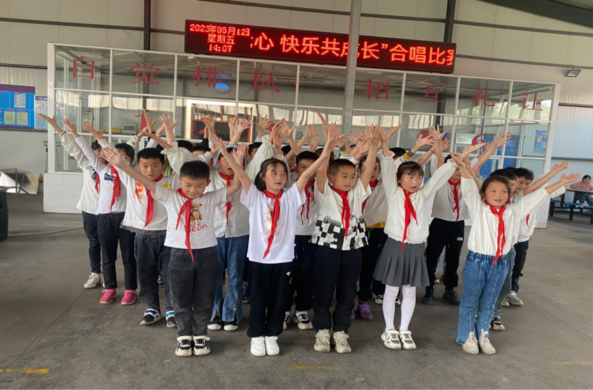 新密市岳村镇赵寨小学清廉学校建设之“艺术润我心 快乐共成长”合唱比赛活动时间:2023-05-12 为营造浓郁的校园文化氛围,丰富学生的校园生活,培养学生积极向上,乐观进取的精神,给学生提供展示自我的舞台,激发学生对艺术的兴趣和爱好,2023年5月12日,赵寨小学举办“艺术润我心 快乐共成长”合唱比赛活动。 本次活动有班级合唱和艺术技能展示两项内容,设置一、二等奖。 比赛形式: 1、合唱比赛,1到6年级全体同学参赛,共有10个合唱队,比赛出场次序以抽签方式来决定,五六年级为高年级段,三四年级为中年级段,一二年级为低年级段,7位评委打分,去掉最高分和最低分,起评分为8分,最高为9.9分,其余取平均分,即是最终成绩。 2、艺术技能展示,每一班抽十人,以班级座位号为标准,每错一名同学扣一分。合唱比赛公布一次成绩,技能展示公布一次成绩。