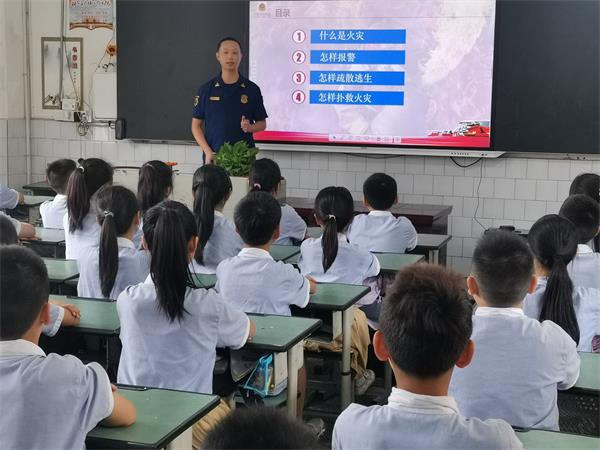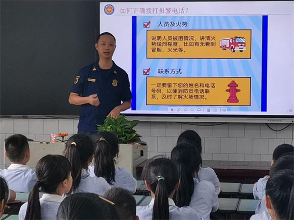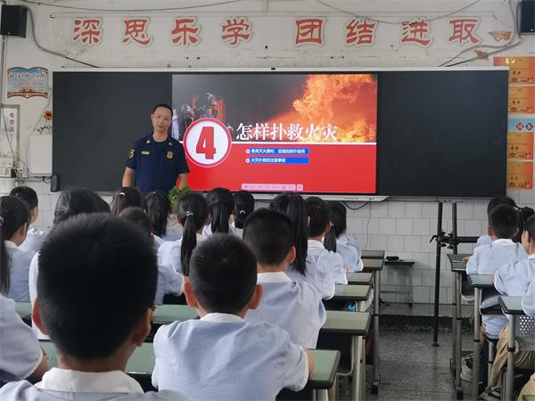 张军副科长给孩子们详细讲解了什么是火灾?怎样报警,怎样疏散逃生,怎样扑救火灾四方面内容。张副科长的制作了精美的课件,讲授幽墨风趣,孩子们听得,孩子们听得津津有味。眉山电视台全程录像。