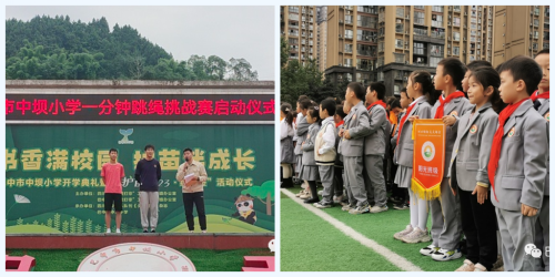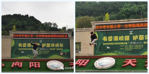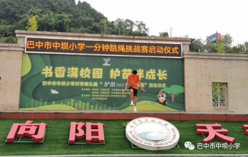 巴中市中坝小学举行“校园心心向阳,学子‘绳’彩飞扬”跳绳活动时间:2023-10-13 为积极贯彻“健康第一”的指导思想和现代健康理念,推进校园体育文化建设,本着“生命不息,运动不止,强我体魄,阳光向上”的运动精神,培养学生主动锻炼,终身锻炼的良好习惯。四川省巴中市中坝小学于2023年10月9日在学校操场举行了“校园心心向阳,学子“绳”彩飞扬”一分钟跳绳挑战赛活动启动仪式,并公布战“绳”榜跳绳挑战赛第二期霸榜同学及其挑战成绩。