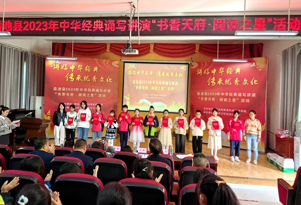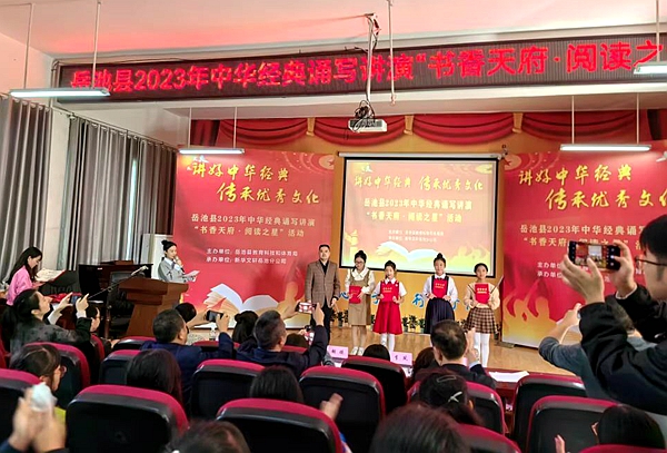 岳池县东湖学校承办“书香天府·阅读之星”活动时间:2023-10-16 为了进一步营造书香校园、建设书香社会,引导少年儿童亲近经典,感受中华文化的魅力,2023年10月13日上午,四川省岳池县东湖学校承办“书香天府·阅读之星”经典诵读比赛,此次活动旨在传承千古文明,乐享诗意人生,大力弘扬民族精神,表达对祖国的赞美、热爱之情。