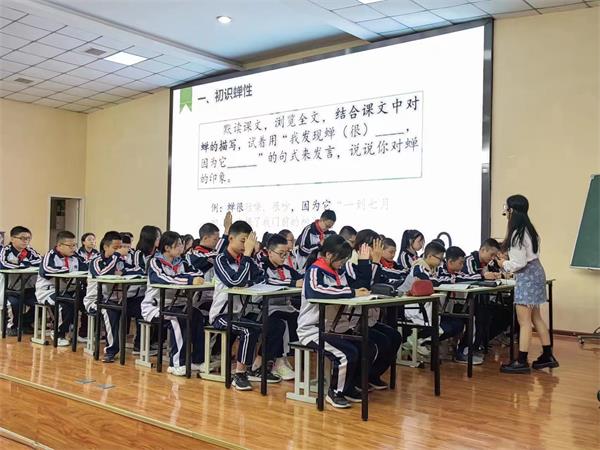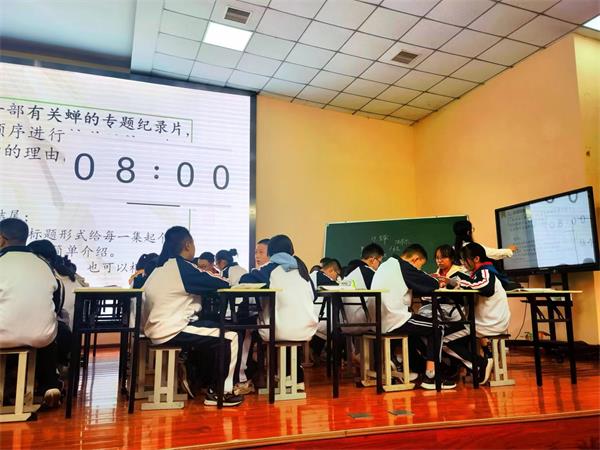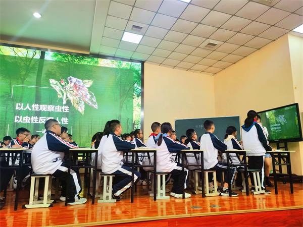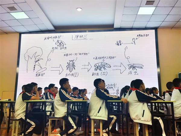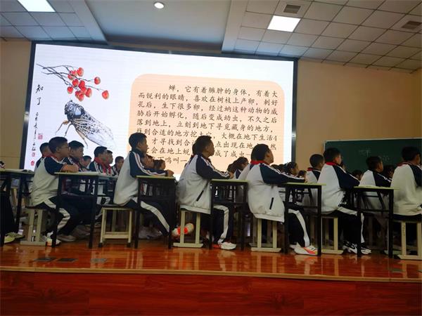 第一堂课由王强老师执教。王强老师精心设计教学板块:“居高声自远,诗意蝉一生”“等闲识得昆虫面,关键词句情义绵”“四年蝉生五周鸣,手法语言话蝉意”“纸上得来终觉浅,语言运用方为真”,让人耳目一新。王老师在教学过程中采用网友投稿、文段对比、小组合作讨论、分享品析等巧妙教学形式,突出法布尔小品文的语言特点,升华生命的意义。整个课堂教学环节环环相扣,老师如导演,匠心独运,运筹帷幄,凸显自读课文学生的主体作用。孩子们在优美的文字中学习写作。王老师犹如一名处事不惊的儒将,云淡风轻,娓娓道来,一堂沉浸式的教学简直是一场盛宴。