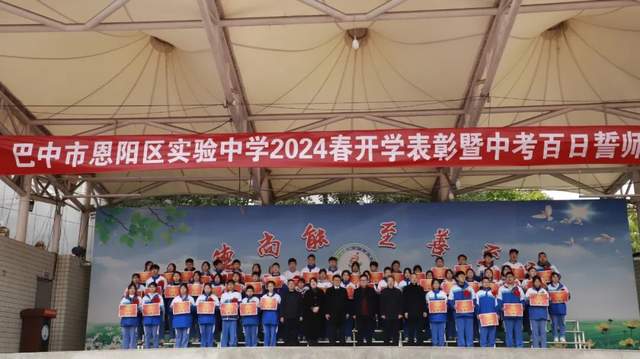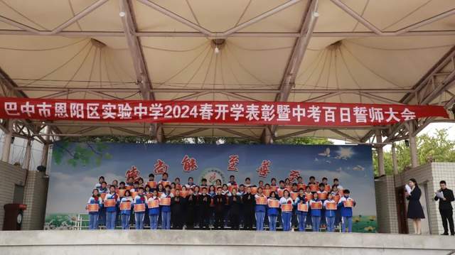 龙首昂扬志千里 梦想闪耀启新篇——恩阳区实验中学2024春开学表彰暨2024届中考百日誓师大会时间:2024-03-03 心迎新岁,人间烟火正在等一场新的春暖花开。3月1日下午,四川省巴中市恩阳区实验中学2700余名师生齐聚足球场,共同参加2024年春季学期开学表彰暨2024届中考百日誓师大会,用这个既定的仪式“收拾心情,调整状态,明确态度,下定决心。”迎接新学期的到来。 ![]() 升旗仪式