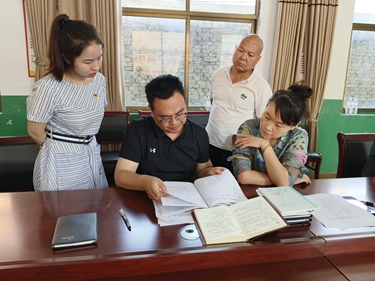 会后区教育局领导和区宣传委领导翻看党支部《工作纪实》及支部成员的学习笔记并给予指导。善应镇南平学校
