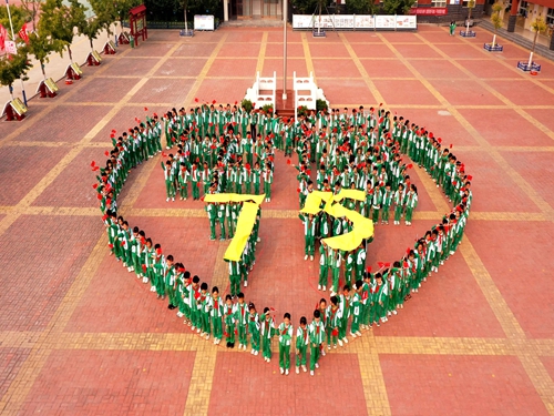 河南内黄:绿色中国 赤心闪耀时间:2024-09-29 2024 年 9 月 29日,河南省安阳市内黄县第六实验小学2200余名师生齐聚楼前广场,摆成“中国”“75”的字样,手持五星红旗共同《歌唱祖国》,以此庆祝新中国75周年华诞。 活动现场,学生们怀着对祖国的深深热爱和敬意,大声歌唱,精心摆出了独特的造型。他们用自己的身体组成了一个巨大的心形外圈,象征着对祖国的无限热爱与衷心拥护。在“心”形的内部,“中国”“75”的字样格外醒目,既表达了对祖国的深情告白,也为祖国的 75 岁生日献上了一份特殊的礼物。 在本次活动过程中,“绿色中国”的主题贯穿始终,提醒着六实小的每一个师生要爱护环境,为建设美丽中国贡献自己的力量。学生们纷纷表示,将以此次活动为契机,努力学习,积极进取,为实现中华民族伟大复兴的中国梦而奋斗。 |