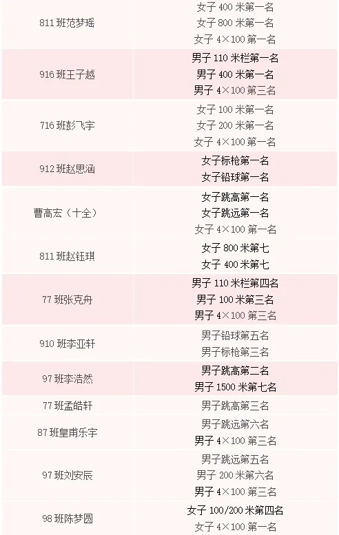 市赛狂揽十一金!二全初中田径队再创佳绩!奔跑吧·少年” 2024年南阳市青少年田径锦标赛 顽强拼博勇夺第一 体育承载着国家强盛、民族振兴的梦想。体育强则中国强,国运兴则体育兴。11月2日-3日,我校田径队代表宛城区参加“奔跑吧·少年”2024年南阳市青少年田径锦标赛,怀凌云壮志、展飒爽英姿、顽强拼搏、奋勇夺冠! 在本次比赛中,我校学生在田径赛场上勇于拼搏、积极奋进,在众多代表队中脱颖而出,在19项比赛中,荣获11金1银7铜,团体总分第一名,并荣获体育道德风尚奖。 赛场梦想飞扬 青春荣誉绽放 短短两天的时间里,我校运动健儿们激烈角逐,奋勇争先,砥砺前行。在奔跑、冲刺、跨越、跳跃、投掷中,享受挥洒汗水的快乐,体会成功的喜悦。 颁奖时刻 副校长侯起超作为冠军领队为前三名颁奖 个人所获成绩 反思再提升 侯校长赛后对运动员进行指导 建校五年以来,我校以“健康第一”的理念定位体育在教育中的重要作用。目前,已形成“一节、两赛、三课程”体育教育格局,从大课间到体育社团活动,从常规体育课程到课余体育锻炼,体育已然成为二全全体师生不可或缺的生活方式,全民体育、全民健身、“大体育”“大健康”的观念早已在二全落地生根。 奋勇拼搏创佳绩,荣誉墙上展辉煌!沉甸甸的奖牌背后是二全运动员的刻苦训练和顽强拼搏;金灿灿的荣誉映照着雁阵团队的悉心指导和无私付出。拥有梦想,拼搏将永不停步!二全运动健儿用“梦想照亮未来”,以奋勇当先的精神迎接新的挑战,怀百折不挠的斗志再创佳绩! 供稿:南阳市第二完全学校初级中学 |