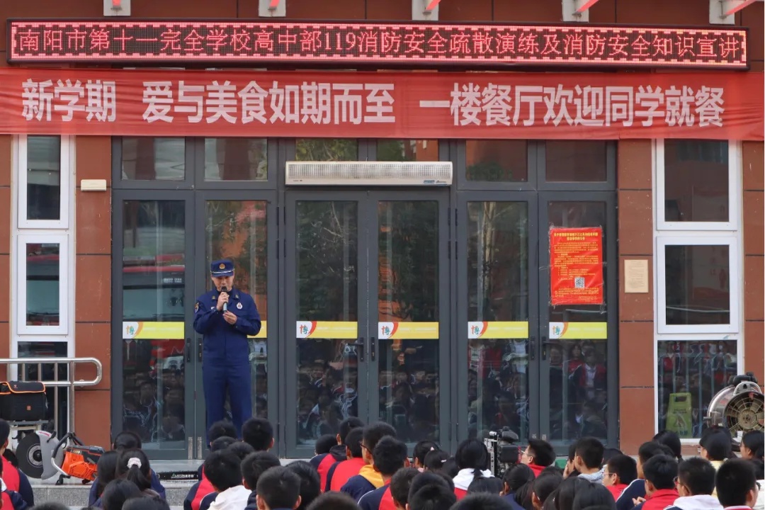 消防进校园,安全伴我行——南阳市第十一完全学校高中部119消防安全疏散演练及消防安全知识宣讲2024年11月9日是第33个全国消防日。为深入提升学生消防安全意识和自防自救能力,南阳市第十一完全学校高中部精心策划,特邀请南阳市高新区消防救援大队到校开展“消防进校园,安全伴我行”119消防安全疏散演练及消防安全知识宣讲主题活动,旨在全面提升师生消防安全风险防范意识。 为确保演练安全有序地开展, 王主任、赵主任、胡老师对师生提前进行演练注意事项及流程告知。 (学生疏散演练) (消防安全救援演练) 师生在消防指战员的引导下,迅速有序疏散到安全区域。随后,消防指战员不仅对全体师生进行了消防安全知识、消防安全紧急处置办法的培训,还向大家展示并讲解了专业消防救援器材及其具体使用办法,现场氛围热烈,学生积极参与,踊跃互动。 安全可以演练,生命不能彩排,本次安全消防演练,不仅提升了全校师生的消防安全意识和自防自救能力,还进一步强化了校园消防安全风险的防范。未来,学校将继续加强消防安全教育工作,为师生们营造一个更加安全、和谐的校园环境。 供稿:南阳市第十一完全学校高中部 |