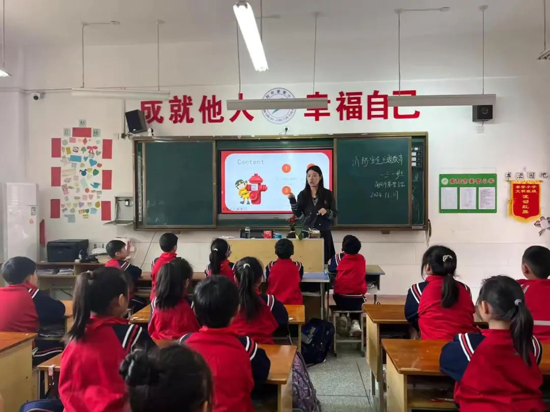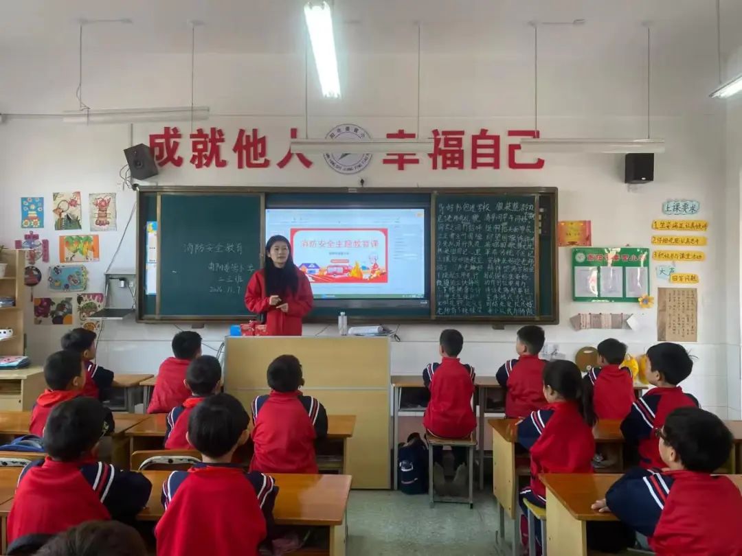 校园消防演练 筑牢安全防线——南阳市姜营小学开展消防安全疏散演练活动消防安全无小事,时时处处需留心。2024年11月9日是第33届消防宣传日,结合上级主管部门开展关于组织消防疏散演练活动的通知文件精神,为了加强学生的安全意识,强化学生的安全逃生技能,提高学校的应急处置能力,筑牢校园消防安全这道“防火墙”,打造“平安校园”。2024年11月7日上午,南阳市姜营小学组织开展消防安全疏散演练活动。 演练部署,安排有序 为了此次演练更有针对性,我校制定了详细且符合学校实际情况的消防安全疏散演练方案,并组织召开专项会议,明确演练目的,进行消防安全知识培训、学习演练方案、进行人员分工,细化各楼层的疏散指引,强调演练过程中的注意事项,确保演练能有效、安全地开展。 消防演练前,各班班主任对学生进行了相关消防安全教育 ,帮助学生掌握基本的自我防护意识和逃生技能,明白发生火灾时应该如何应对。