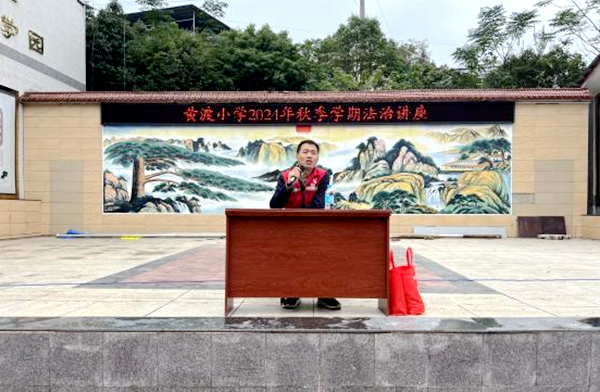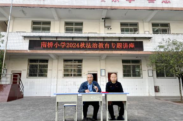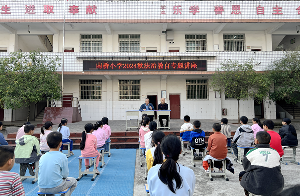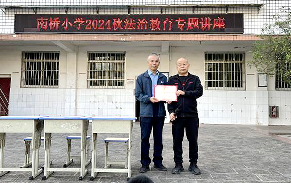 关爱明天 法润成长 营山县司法局组织法律进校园活动系列(二)时间:2024-11-12 为深入践行习近平法治思想,切实提升青少年普法工作的针对性和实效性,营山县司法局“校园法宣小队”持续推进以“关爱明天·法润成长”为主题的法律进校园活动,深入辖区内各中小学开展了一系列的法治宣传教育,为青少年学生的健康成长保驾护航,有力推动了校园普法工作的全面开展以及依法治校工作的扎实推进。 10月29日,营山县司法局法宣小队成员、回龙司法所所长唐明到营山县南桥小学开展主题法治讲座,并受聘为该校法治副校长。聘任仪式上,唐明郑重的从南桥小学校长罗庆的手中接过聘书,正式受聘为法治副校长。聘任仪式后,唐明首先结合青少年中常见的几种犯罪行为,通过以案释法的形式,详细地向全校师生讲解了青少年中常见不良习惯的危害性;其次强调了培养良好的习惯对于青少年远离危害和预防青少年犯罪的重要性,从而强化警示教育,敲响思想警钟,引导学生们杜绝不良恶习,远离违法犯罪;最后讲解了校园欺凌的形式以及危害性,呼吁同学们远离校园欺凌。讲座结束后,唐明副校长参加了学校安全会议的召开,并在会上就关于学生安全问题提出自己的建议:一是加强校园安防装备的配备,定期检查、维护好监控设备,确保监控无死角。二是做好防范工作,确保校内及校园周边环境安全稳定。三是重视青少年心理健康教育,共促家、校、社对青少年身心健康发展营造良好环境。