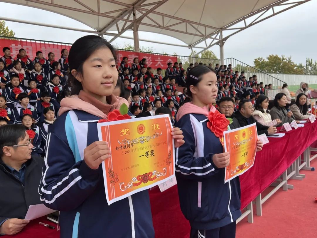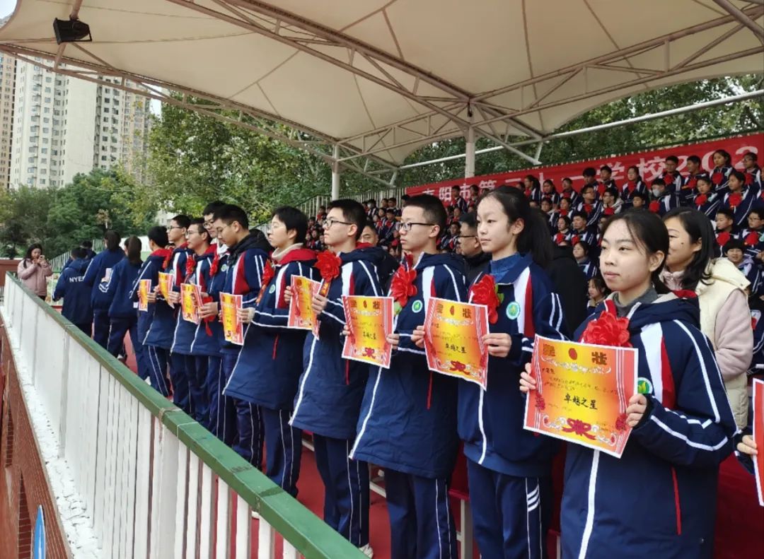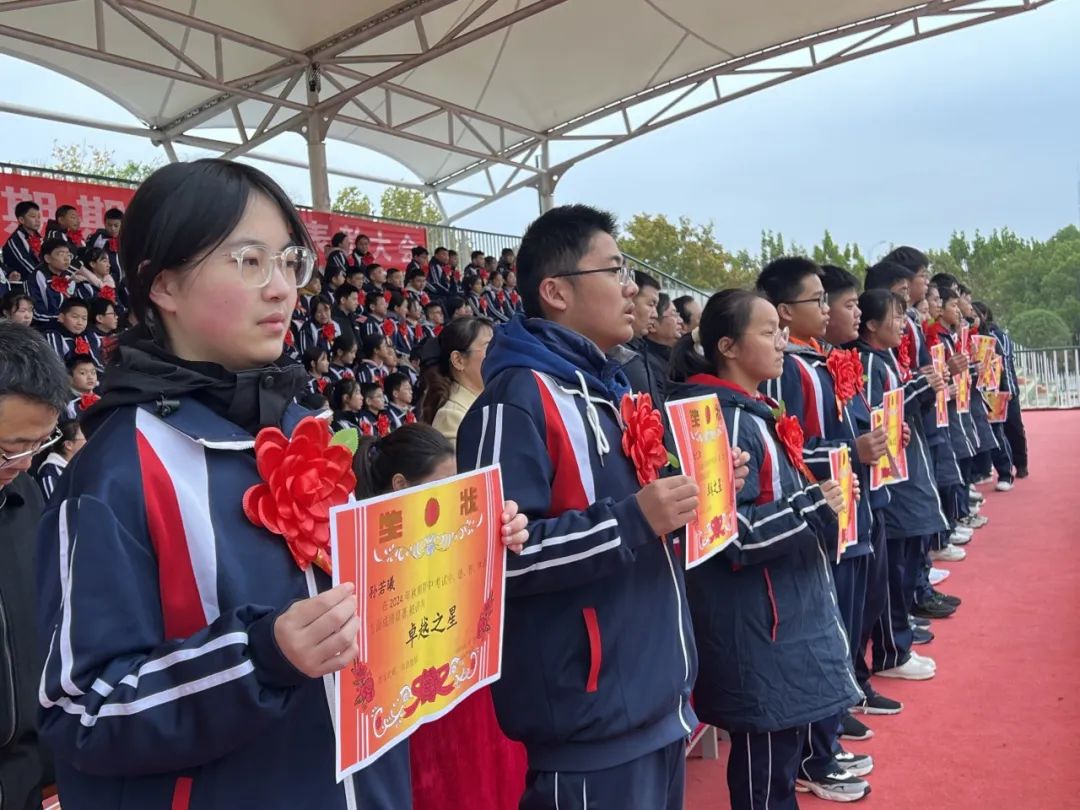 冬日映辉煌,青春绘华章冬日映辉煌 青春绘华章 ——南阳市第二十一学校初中部2024年秋期期中考试总结表彰大会 重磅喜讯 美丽的二十一, 硕果盈枝; 勤劳的二十一, 能者为师; 奋进的二十一, 华章锦绣。 鸿鹄不坠青云志,少年有行必生辉。为表彰优秀、树立榜样,激励同学们奋发向上,营造良好的学习氛围,2024年11月19日上午,南阳市第二十一学校初中部隆重召开2024年秋期期中考试总结表彰大会。二十一学校徐士明书记、初中部刘泽校长、蒋秋副校长、郭良平副校长等校领导及全体师生共同参会。 校长寄语 引领征程 二十一学校初中部刘泽校长对在河南省诗词大赛中获得一等奖的八(18)班赵倚捷同学、在南阳市卧龙区第三十一届青少年爱国主义读书教育活动演讲比赛中荣获初中学段一等奖第一名的七(3)班卢佳宜同学、在卧龙区第十届中小学田径运动会中获得团体第一名的运动员们、在卧龙区运动会中表现卓越的轮滑小将们以及在期中考试中表现优秀的同学们表示最诚挚的祝贺,期待全体师生调整心态、制定目标、勤奋努力、坚持不懈,莫负青春好时光,勇当奔跑追梦人! 国旗飘扬 荣耀启航 大会在庄严肃穆的国歌声中拉开帷幕,全体师生面向国旗,行注目礼,高唱国歌,激昂的旋律回荡在校园上空,点燃了在场每个人心中的奋斗激情。 卓越教师 心声激扬 勇敢自信,坚持自律,自强努力,合作同行。九年级数学贾林英老师带大家走进一场关于“学习之旅”的奇妙探险,分享三点“探险秘籍”:勇敢探索未知、珍视每一次失败、学会团队合作。贾老师希望全体学生在未来的日子里,以自信为帆,自律为舵,自强为桨,乘风破浪,驶向梦想的彼岸! 逐梦少年 未来可期 向阳而生少年郎,追光逐梦续华章。七(9)班的靳一帆同学作为学生代表向给予孩子们父母般贴心的关爱,朋友般真情的鼓励的老师们致以最真诚的感谢,并号召同学们以乐观积极的态度对待每天的学习和锻炼,学会为自己寻找动力,养成良好的习惯。拿出态度,坚定向前!每天进步一点点,看似微不足道,但积累起来,却能成就非凡。 榜样之光 青春留影 用榜样凝聚力量,以信念鼓舞前行。饱读诗书,笔耕不辍,攻克一道道难题;勤于思考,坚定不移,克服一个个困难;沉重的训练装备,手拿肩扛勤奋练习、无怨言;完美的演绎呈现,动作行云流水、成佳话!学校领导为获奖同学颁发奖状,并合影留念。各班代表依次走上领奖台,他们的步伐坚定而自信,镜头捕捉到的每一个微笑、每一个眼神,都是对奋斗青春的最好诠释。这一刻,荣耀与梦想交织在一起,成为他们人生中闪亮的篇章! 热血沸腾 誓言铿锵 铿锵誓词显风貌,一朝辉煌日日搏。八(2)班钱玉航同学带领全体同学庄严宣誓:严守校纪,自律自强。明确目标,努力实现。讲求方法,克服困难。用心听讲,主动发言。做好笔记,及时回看。限时作业,绝不拖延。交流合作,强化思辨。爱我年级,爱我班级!今天,我以二十一为荣;明天,二十一以我为傲。生命如虹,青春无悔,我们必定成功,我们必定辉煌!二十一,加油!二十一,必胜! 回眸前半期奋战岁月,有苦亦有甜;展望后半期执笔鏖战,勇气当一如既往!让我们以积极的态度,饱满的热情,求实的作风,追求新跨越,创造新辉煌!无奋斗,不青春!让我们用拼搏和努力做翅膀,积蓄力量,向着更好的自己逆风飞翔! 榜样引领新目标,激情点亮新征程 昨日的成绩 是我们立足今日的基石 眼下的喜悦 是我们谱写未来的动力 加油吧,二十一学子 在未来的日子里 让我们携手并进 共同书写更辉煌的篇章 供稿:南阳市二十一学校 |