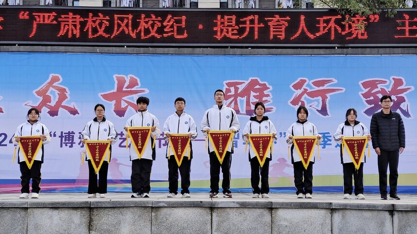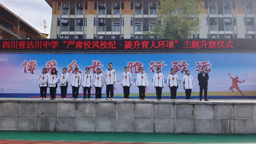 达川中学举行“严肃校风校纪·提升育人环境”主题升旗仪式良好的校风校纪是校园文明的基石。为确保校园秩序井然,强化同学们的纪律意识,共建和谐美好校园,11月25日,四川省达川中学举行了“严肃校风校纪·提升育人环境”主题升旗仪式。 红日初升,其道大光。升旗手振臂一挥,五星红旗迎风飘扬,华蜀、三里两校区全体师生庄严肃穆,面向国旗,行注目礼。 高二.14班陈妍瑾同学发表国旗下的演讲,她从同学、老师、家长、学校等几个方面表达了自己的想法。第一,利用班会等形式加强宣传;第二,班级、学校结合实际情况进一步完善纪律规矩;第三,继续建立健全监督管理机制;第四,树立先进典型,发挥榜样作用;第五,密切家校联系,加强家校合作。她认为,只要全体川中人携手共进,必能严肃校风校纪,提升育人环境。 校风校纪体现在校园的每一个角落,关乎着每一位同学的成长与未来。学生处副主任贺全福在安排德育工作时进一步强调校风校纪,鼓励全体同学锤炼品格、打磨意志,严于律己正言行,敬畏规则扬正气,共同维护校园的和谐安定!随后,他宣读了第11周荣获“守正示范班级”称号的班级名单及学生会成员名单。 学校党委委员、纪委书记粟高峰为第11周“守正示范班级”称号的班级颁发流动红旗,党委委员、副校长周炀为本届学生会主席及各部长授牌。 最后,周炀作总结讲话。他用典型事例告知大家,校风校纪不是空洞的口号,而是实实在在的行为准则。没有规矩,不成方圆。学校规章制度建立并执行的目的不是限制自由、约束个性,而是为了维护正常的教育教学秩序,维护同学们在校生活与学习的权益,为大家的安全提供保障,提高同学们守规守法的自觉性。他希望同学们珍惜在川中的时光,共同努力,去书写校风校纪的壮丽篇章,去营造一个充满书香与正气的川中校园!(来源:四川省达川中学 杨丹) |