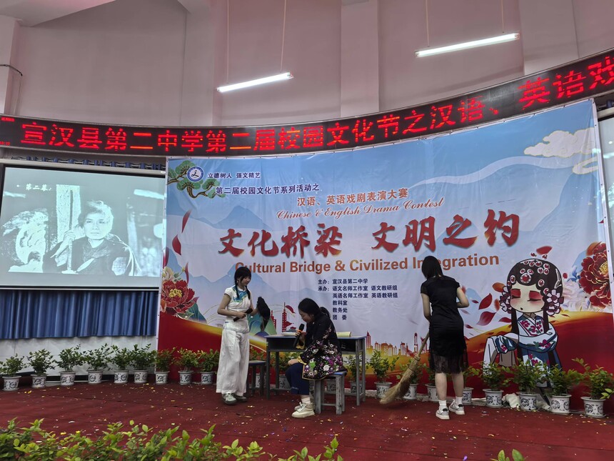 11月25日下午,四川省宣汉县第二中学在学术报告厅举行了以“文化桥梁、文明之约”为主题的第二届校园文化节系列活动之汉语、英语戏剧表演大赛。