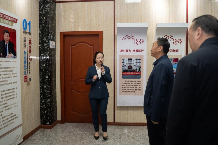 市委社会工作部领导一行先后参观了学校“党建引领、五育并举”育人体系成果展、团学建设成果展、美育成果展、“六善”党建文化走廊、党建办公室和党员活动室,最后,与会领导在党员活动室一起观看了“六善”党建文化纪录片。