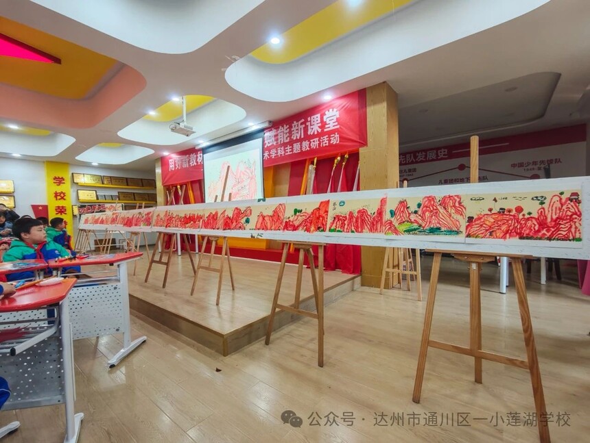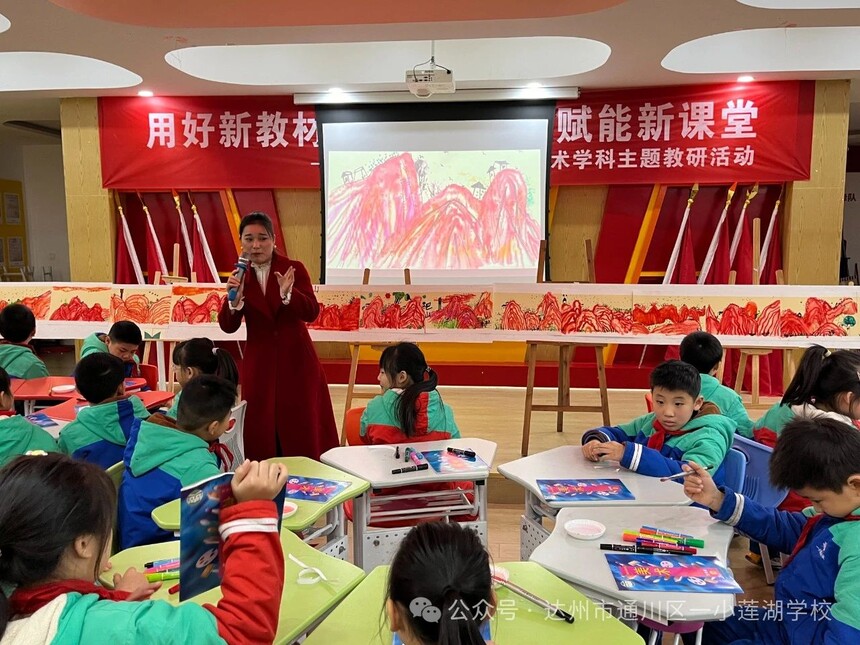 【莲湖·教研】“用好新教材,落实新课标,赋能新课堂”——通川区2024年中小学美术学科教学研讨活动在一小莲湖学校举行初冬暖阳,岁月沉香。11月29日,四川省通川区2024年中小学美术学科教学研讨活动在一小莲湖学校举行。此次活动以“用好新教材,落实新课标,赋能新课堂”为主题,以课堂展示和专题讲座为主要内容开展,来自全区各中小学的美术教师共同见证了这场艺术的交流与碰撞。 活动伊始,学校覃高平副校长致欢迎辞。他说:艺术,是心灵的镜像,是情感的抒发,更是创造力的源泉。在美术的世界里,每一笔、每一划都蕴含着创作者对生活的独特见解和深刻感悟。在新课标的引领下,如何用好新教材,来展现不一样的美术课堂是每一位美术老师值得去探索、去学习、去发现的问题。希望大家能在今天的课堂展示和专题讲座中共勉。 通川区一小莲湖学校董虹利老师《生肖邮票》 董老师从孩子们的生肖属相入手,引导学生们参与到课堂的学习、讨论及绘画环节之,根据十二生肖的特点并结合中华传统文化知识,最终确定以“龙”为主要元素进行邮票设计。孩子们大胆尝试,用色彩绘出了浓浓的情意。董老师以温婉流畅的语言贯穿整堂课,给人一种如沐春风之感。 通川区第二小学校的李正英老师《红色的画》 李老师以生活中的红色为主线引导学生们大胆想象,用彩笔勾勒红色线条,将抽象的山水赋予灵动的色彩,用点、线、面结合的方式让一组一组的红色图案跃然纸上,最后将学生们的作品连成一幅美丽的红色画卷,既彰显了李老师不凡的教学功底,又突出了红色的非凡意义。李老师用平实的语言激发了学生的艺术潜能,引领我们走进一个又一个梦幻般的美学空间。 通川区第一小学校张严老师《用大单元的教学备课模式研究新型的课堂教学法》 张严老师以《义务教育艺术课程标准》为核心开展专题讲座,从“核心素养”中的四个方面,到“任务群”的三个基本维度,再到“艺术课堂活动方式”的五个表现形式,对艺术课程标准进行全面解读,结合现阶段美术课堂教学的重点,要求老师们树立“大单元教学备课模式,精心设计教学计划”。张老师以课议课,与在场的老师们讨论美术教学的新方法,大家收获颇丰。 达州市高级中学李峰老师《美术公开课如何抓重点》 李峰老师通过折纸游戏引出“如何在美术公开课上抓重点”的话题,从“合理的内容”和“出彩的呈现”两个方面进行说明。他强调,一堂好的公开课必须结构清晰、重点突出、准确无误;情境创设要源于生活,教学环节要紧凑、环环相扣,课堂提问要激发学生求知欲。 “教”海无涯,“研”途无尽。此次活动在“双新”的引领下,为中小学美术教学探索出了一些新的路径和实用技巧。相信通过一次又一次的实践活动,一小莲湖学校的美术课程必将绽放出更加绚丽的光彩。(李智宇) |