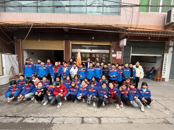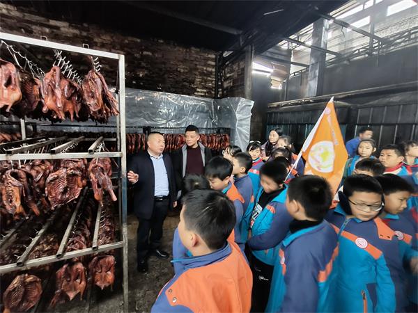 开江县任市镇第二小学“行走的思政课”系列二:传统风味的传承与坚守为进一步贯彻落实党的教育方针,加强学校思政课建设,12月12日,四川省开江县任市镇第二小学五年级二班全体师生在学校分管德育工作副校长熊伟的带领下走进了任市镇唐板鸭食品工厂,深入探寻这一地方特色美食的独特魅力。 刚踏入店门,浓郁醇厚的卤香便扑鼻而来。店内,一排排色泽金黄、表皮油亮的板鸭整齐悬挂,令人垂涎欲滴。据唐板鸭食品工厂老板唐洋刚介绍,唐板鸭的制作工艺源远流长,历经数代传承,始终坚守传统配方与手工制作。精选当地优质麻鸭为原料,确保肉质鲜嫩、紧实。在腌制环节,精确配比的香料被均匀涂抹于鸭身,充分渗透到每一丝鸭肉中,随后历经多道工序,用松树木屑和柏树木屑慢火烤制,方能成就其独特风味。唐板鸭不仅在本地享有盛誉,还通过网络销售等渠道,逐渐走向更广阔的市场,让更多人得以品尝到这一源自任市镇的传统美味,成为当地美食文化的一张亮眼名片。 活动快结束时,熊校长对同学们说:“我看到同学们在参观过程中充满好奇的眼神和积极提问的热情,你们的探索精神让我深感欣慰。希望同学们能把这次所见所闻、所思所想融入到今后的学习与生活中。在学习上更加勤奋努力,用知识武装自己,做一个有责任感、有担当的新时代好少年。”随后师生在唐板鸭食品工厂拍照留念。 此次活动旨在通过亲身体验与观察,开拓学生们的眼界,培养学生的创新精神以及丰富课外知识。同时,工厂中展示的特色食品文化,如传统工艺的传承与创新,激发了学生们对本土文化的热爱与民族自豪感。(刘祥燕) |
