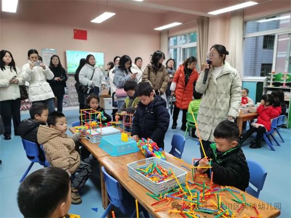 跟岗学习活动在老师们的温情相聚中拉开序幕。活动伊始,达川区实验幼儿园副园长王芝英详细介绍了幼儿园的办园理念、办园特色、师资队伍及学习安排,对跟岗教师的到来表示热烈欢迎。随后,在周倪萍和幸陈伟两位老师的带领下,老师们参观了园所环境,观看了园幼儿体操队小朋友带来的精彩表演,深入感受幼儿园用环境影响人、用环境教育人、用环境培养人的环境育人理念。生动有趣的幼儿游戏、丰富多元的游戏材料、自由自主的游戏氛围、温馨和谐的师幼关系,展现了幼儿园“自主游戏”背景下幼儿实践操作、发现探究的活动样态。达川区进修校教研员程蔚对本次跟岗学习活动目的进行了讲解,对学员们强调了跟岗学习的纪律要求。