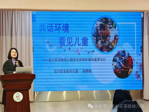 12月9日下午达川区实验幼儿园副园长赵艳艳以《共话环境 看见儿童》为主题进行了专题讲座。讲座中,赵园长阐述了在教育4.0时代背景下自主游戏的价值与高质量学习的关键特征,结合实幼在自主游戏中生动鲜活的教育实例,分享了以空间开放互通、时间动态打通、材料多元流通、关系聚合融通——“四通”共构师幼共长的游戏畅域,助幼儿“畅玩、乐玩、创玩、慧玩”的实践样态。