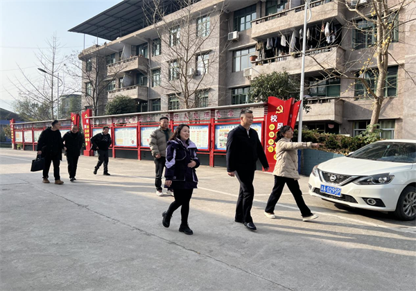 随后,程先君局长一行对校园环境进行了实地查看。他们漫步在校园内,仔细了解了学校的建筑物修建年代、绿化、硬化、美化以及文化建设等方面的情况。程局长对学校的校园环境建设表示赞赏,认为学校能够注重学生的全面发展,营造一个优美、和谐的校园环境。