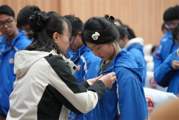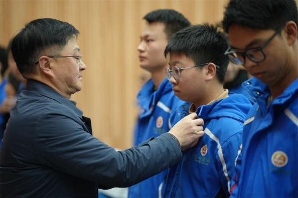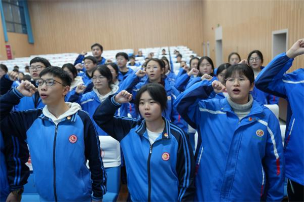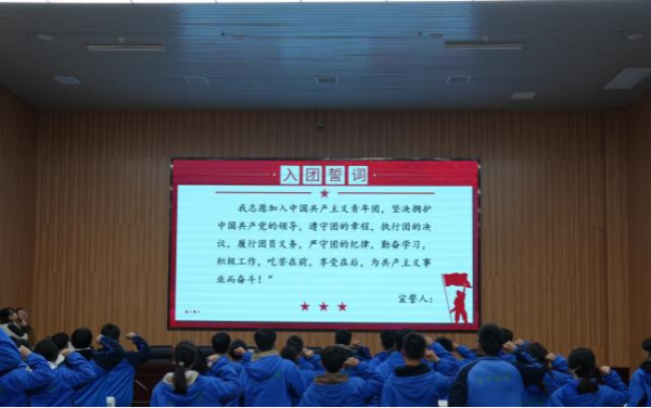 “挺膺担当砺青春,奋楫笃行向未来” ——达州耀华学校举行2024年下半年新团员入团仪式青史如镜,鉴照峥嵘岁月; 初心如炬,辉映复兴征程。 为纪念“一二·九”运动八十九周年, 深入贯彻习近平总书记关于 青年工作的重要思想, 吸收更多优秀青年学子加入 中国共产主义青年团, 提升共青团员组织荣誉感和归属感。 12月10日下午, 达州市耀华中学在学术厅三开展 “挺膺担当砺青春,奋楫笃行向未来” 新团员入团仪式。 达州市耀华中学校长黄思为、 党建指导员张涛、德育主任包善平、 校团委书记陈红、 全体新团员及老团员代表参加入团仪式。 奏唱国歌 扬帆开新局,奋楫再出发。 入团仪式在国歌声中正式拉开帷幕。 全体师生肃立,共同唱响国歌, 激昂的旋律回荡, 彰显了青年一代的爱国情怀和青春活力。 宣读入团名单 党建指导员张涛宣布新团员名单, 并对新入团的同学致以热烈祝贺。 2024年秋季学期,经团组织培养考察, 我校共有55名先进青年被发展入团。 为学校团委注入了新鲜血液, 增添了新的力量。 颁发、佩戴礼 在庄重的氛围中, 与会领导为新团员颁发团员证 佩戴团徽 团徽闪耀在胸前,承载着使命, 激励新团员们奋勇向前 入团宣誓 在团委书记陈红的带领下, 团员们面向团旗, 举起右拳,庄严宣誓! 铿锵有力的誓言,落地有声, 新团员以崭新的精神面貌, 向团组织表明决心。 新团员代表发言 新团员代表杜金联同学 分享了自己的成长经历和心得体会, 表达了对共青团组织的 热爱和憧憬 她的发言激励了在场的所有团员, 也展现着学校青年团员的优秀风采。 领导寄语 黄思为校长对新加入团组织的同学们 表示祝贺,同时提出了希望和要求: 要坚定理想信念,要做到德才兼备, 要发挥模范作用。 希望团员们怀抱梦想又脚踏实地, 敢想、敢为、善作、善成, 做有理想、敢担当、能吃苦、 肯奋斗的新时代好青年, 让青春在奋力拼搏中绽放出绚丽之花。 齐唱团歌 “五四” 的火炬从这里点燃, 壮丽的事业从这里开启, 激励着我们继往开来。 全体团员肃立齐唱团歌。 激昂嘹亮的歌声, 唱出了新团员的无悔青春, 也唱出了他们对共青团事业的 热爱和对未来的坚定信心。 璀璨星光闪耀着青春梦想, 伟大使命呼唤我们挺膺担当。 此次新发展团员入团仪式的举办, 不仅增强了新团员的责任感和使命感, 也进一步激发了全校师生的 爱国热情和奋斗精神。 相信在党的领导下, 广大耀华学子定能勇担时代重任, 为实现强国复兴的伟大梦想而不懈奋斗, 书写更加灿烂的青春篇章。(唐小凤) |