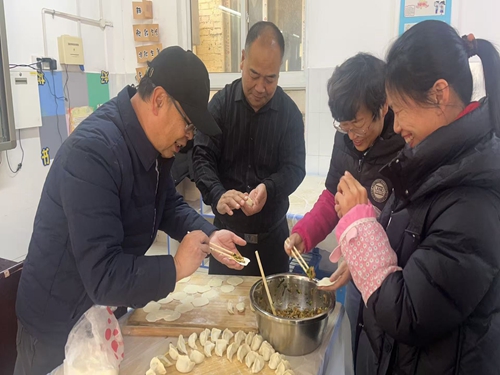 爱在南小 情暖冬至--安阳市南关小学开展教职工冬至包饺子活动时间:2024-12-21 冬至,这个承载着厚重文化底蕴与浓浓人情味的节气,悄然而至。在中国许多地区,冬至有吃饺子的习俗,寓意着团圆和幸福。为了弘扬这一传统文化,同时增强教师之间的凝聚力和归属感,2024年12月20日,安阳市南关小学组织了“爱在南小 情暖冬至”冬至包饺子活动。