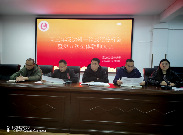 2024年12月20日下午,四川省达州市高级中学高三年级召开达州一诊质量检测成绩分析会,盘存量、找增量、赋能量,从而明方向、优措施、提质量。校党委书记史鸿嘉、校党委副书记、校长刘川、凤翎校区执行校长黄文波、高三年级书记王彦波出席会议,会议由高三年级主任侯晓燕主持,全体高三教师参加会议。
