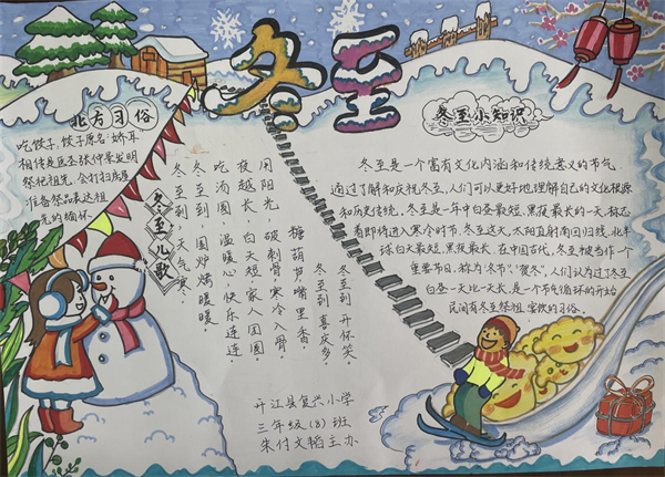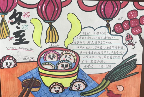 活动结束后,同学们将自己对冬至的了解和喜爱,用一幅幅精美的手抄报表达了出来。