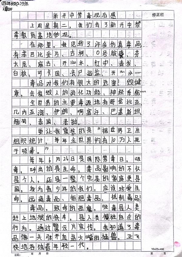 《 禁毒之行,守护青春》——开江县西城小学组织学生参观禁毒教育基地“毒品一日不绝,禁毒一刻不止!”为了提升小学生对毒品危害的认知,增强自我保护意识。近日,四川省开江县西城小学组织学生代表前往开江县禁毒教育基地进行参观学习,让孩子们接受了一场深刻且生动的禁毒教育洗礼。 同学们怀着好奇与期待的心情,在老师的带领下整齐有序地抵达禁毒教育基地。走进基地,首先映入眼帘的是一幅幅触目惊心的禁毒宣传海报,上面展示着因毒品而支离破碎的家庭、深受其害的个人以及被毒品侵蚀的社会景象。孩子们的眼神中透露出震惊与凝重,直观地感受到了毒品带来的巨大破坏力。 在毒品知识展示区,讲解员通过实物模型、图文展板以及生动的讲解,向同学们详细介绍了常见毒品的种类和特征,从传统的海洛因、鸦片,到新型的冰毒、K 粉、摇头丸等,让孩子们对毒品的多样性有了清晰的认识。 随后,师生们来到了禁毒教育影视厅,观看了专门为青少年制作的禁毒教育短片。影片中真实的案例、吸毒者的悲惨遭遇以及他们发自肺腑的忏悔,深深触动了孩子们的心灵。不少同学眼中泛起了泪花,他们真切地意识到毒品离自己并不遥远,一旦沾染,将会带来灭顶之灾。 此次参观禁毒教育基地活动,为西城小学的孩子们上了一堂生动而深刻的禁毒教育课。同学们带着满满的收获返回校园,把自己的所观所想通过手抄报和作文的形式记录了下来。他们代身为禁毒宣传的小使者,把所学的禁毒知识传播给家人和朋友,让更多的人了解毒品的危害,共同营造一个无毒、健康、和谐的社会环境。今后,学校将继续加强禁毒教育工作,开展形式多样的禁毒宣传活动,为孩子们的健康成长筑牢坚实的防线。(邓莉莉 赵小晖) |