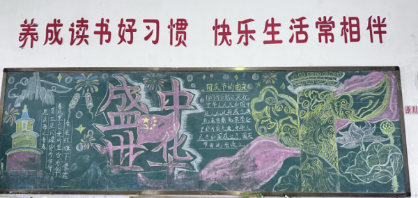 宣汉县君塘镇学校开展国庆节主题黑板报绘制活动为培养学生的爱国主义情怀,激发学生爱国爱党热情,切实落实立德树人根本任务,也为进一步渲染节日氛围,推进校园文化建设和班级文化建设,四川省宣汉县君塘镇学校以“喜迎国庆”为主题,开展了国庆节主题黑板报绘制活动。 以下是部分作品展示: 山河安定无限路,红旗招展迎微风。一张张主题鲜明、内容丰富的黑板报促进了班级文化建设,让此次板报成为学校爱国教育活动中一道靓丽的风景线。同时,在板报的创意构思和精心绘制中,培养了学生的爱国情怀,增强了学生的民族自豪感和责任感。(来源:宣汉县君塘镇学校) |