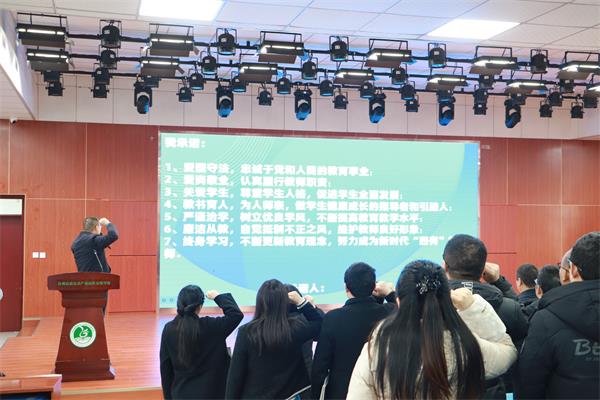 达州市高新区教育系统师德师风践诺会议召开2月26日,在达州高新技术产园区实验学校,由中共达州高新区教育卫生系统综合委员会、达州高新技术产业园区社会事业局组织开展的以“立德树人铸师魂、清风正气润高新”为主题的师德师风践诺活动举行。辖区各级各类学校设分会场,同步开展师德师风践诺活动。 在达州高新技术产业园区实验学校,与会老师认真观看了优秀教师师德故事短片,欣赏了该校学生表演的节目《颂师德 扬师风》。师德考核优秀教师代表教师分享了师德感悟。随后举行师德师风宣誓仪式,老师们庄严承诺:“爱国守法,忠诚党和人民的教育事业;爱岗敬业,认真履行教师职责;关爱学生,尊重学生,促进学生全面发展;教书育人,为人师表,做学生健康成长指导者……廉洁从教,自觉抵制不正之风,维护教师良好形象;终身学习,不断更新教育理念,努力成为新时代‘四有’好老师。”宣誓仪式结束,组织与会教师开展了“师德师风·我践行·我承诺”教师签名墙活动。 中共达州高新区教育卫生系统综合委员会相关负责人表示,开展这一活动旨在进一步推进师德师风建设,切实提高辖区各级各类学校教职工师德师风水平,激励辖区广大教师“学为人师、行为世范”,弘扬高尚师德,树高新区教师良好形象,人人争做新时代“四有”好老师。(唐方胜 贾超) |