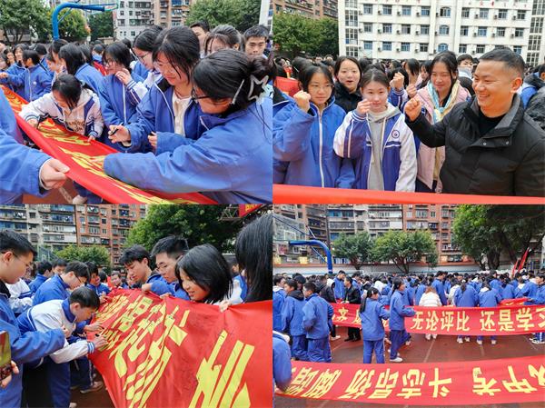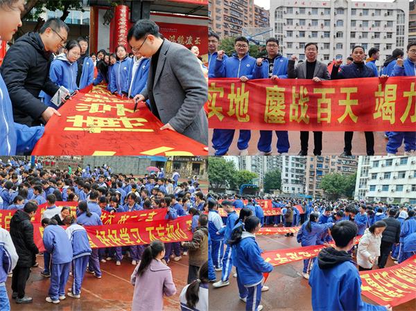 达川四中举行高三、初三复习冲刺动员大会为激发2025届初三、高三学子的学习热情,增强备战中、高考的决心和信心,2025年3月4日上午,四川省达川第四中学在学校大操场举行高三、初三复习冲刺动员大会。学校领导,全体师生参加了此次大会。 伴随着激扬的音乐,全体高三初三师生冒着细雨,齐聚操场。在庄严的升旗仪式里,在嘹亮国歌声中,大会拉开了帷幕。 首先,朱佳思同学作为学生代表,向教师们表达了最诚挚的感谢,感谢老师们的谆谆教诲,感谢长久的陪伴和鼓励。同时向所有同学发出三点号召:一、坚定信念,勇往直前;二、科学规划,高效学习;三、调整心态,积极应考。 高三教师代表龚永刚老师在大会上鼓励孩子们:一、保持自信,乐观向上;二、珍惜时间,高效学习;三、团结协作,共同进步。希望孩子们以梦为马,不负韶华,用行动诠释了“严谨、求实、奋发、攀登”的四中精神,用坚持书写了青春最绚烂的篇章!全体同学举起右手大声喊出:我行!我能行!我一定行!操场上回荡着坚定有力的声音。 学校党委副书记、校长邓小川同志发表讲话,勉励同学们:一、志存高远,以信念为帆。二、脚踏实地,以方法为桨。三、心向阳光,以坚持为舟。同时提了三点建议:一、科学作息。二、精准施策。三、团队协作。 在宣誓仪式上,领誓人柏鹏老师领着初三、高三全体学生发出振奋人心的誓言:“以笔为剑,刺破迷茫;以书为盾,坚守理想!争分秒,斩荆棘,破题海千浪;忍艰辛,抗压力,攀书山万丈!”同学们铿锵的誓言是 “黄沙百战穿金甲” 的无畏勇气,是 “不破楼兰终不还” 的坚定决心! 最后,学校校长邓小川授予高三、初三年级冲刺的战旗,学校领导、科任教师、学生纷纷在班级誓言旗上庄严签下自己的姓名,操场上人头攒动,鼓励加油的声音此起彼伏。(叶智慧) |