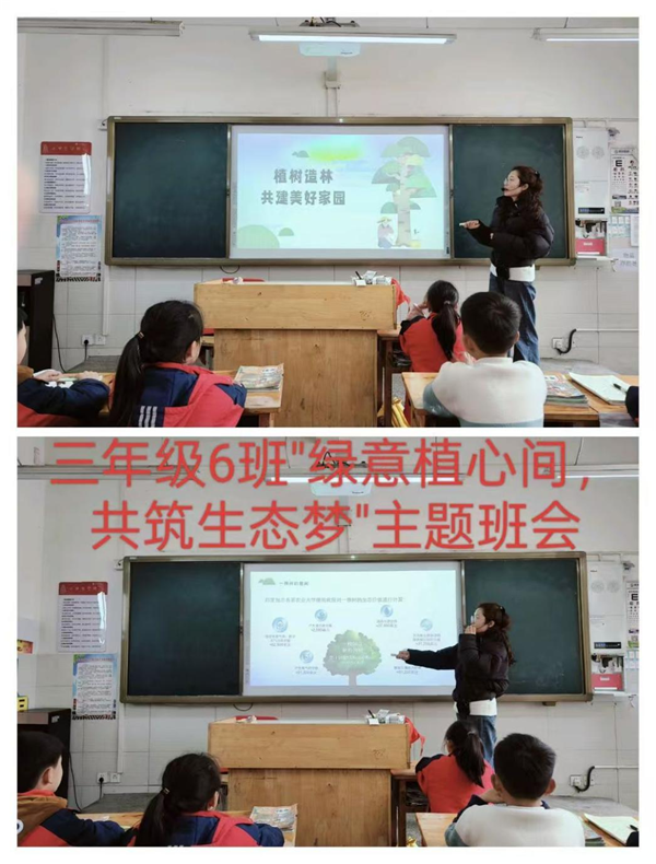 各中队召开了“绿意植心间,共筑生态梦”主题队课。各班班主任通过生动的图片、有趣的故事和丰富的知识,向队员们介绍了植树节的由来、意义以及树木对环境的重要作用。在队课中,队员们积极交流讨论,纷纷表示要为保护环境贡献自己的力量。