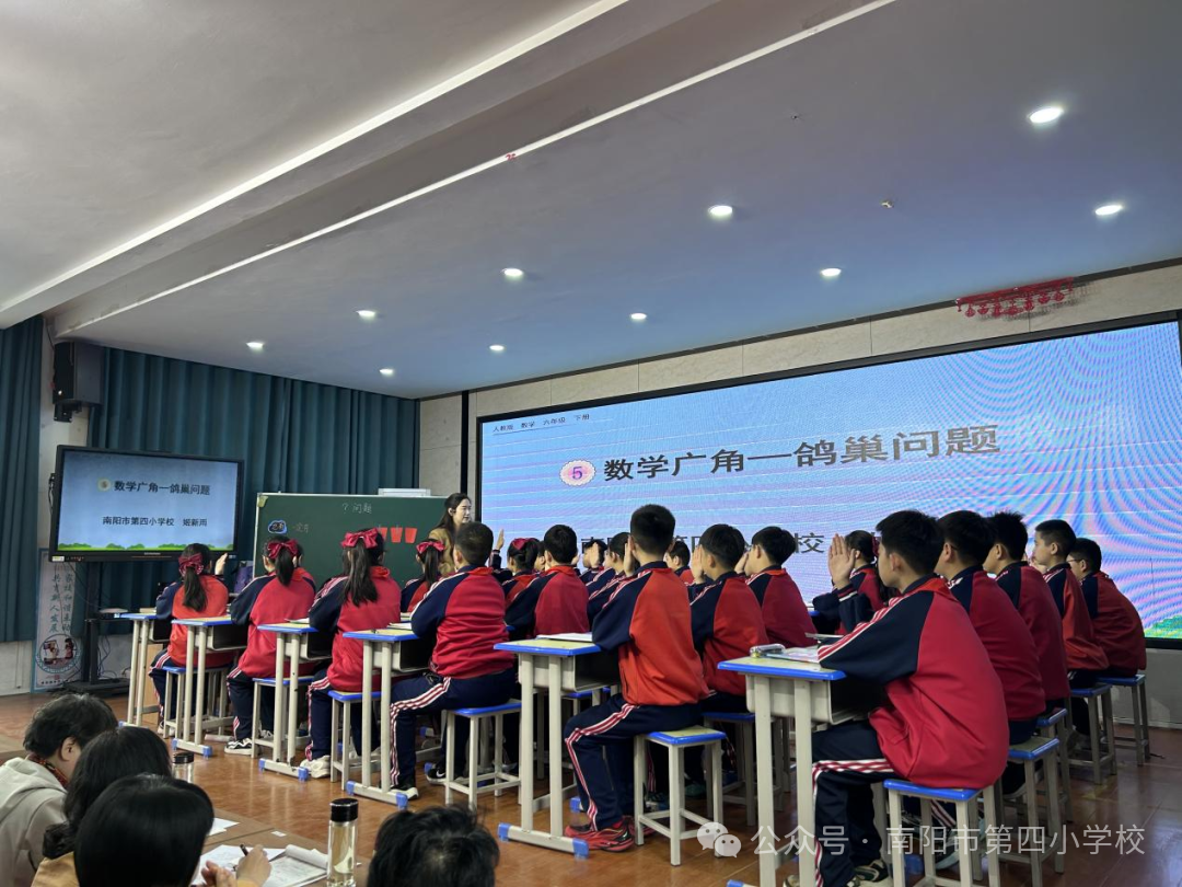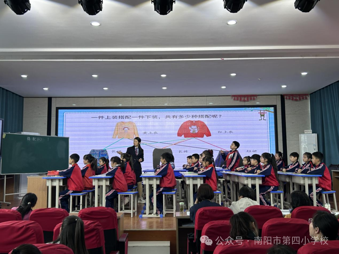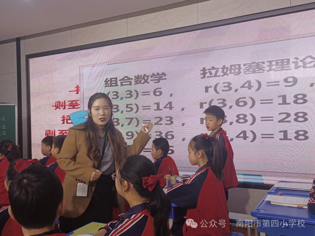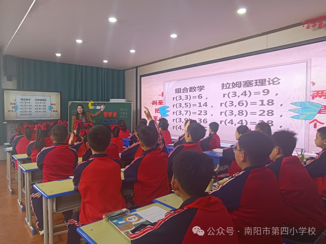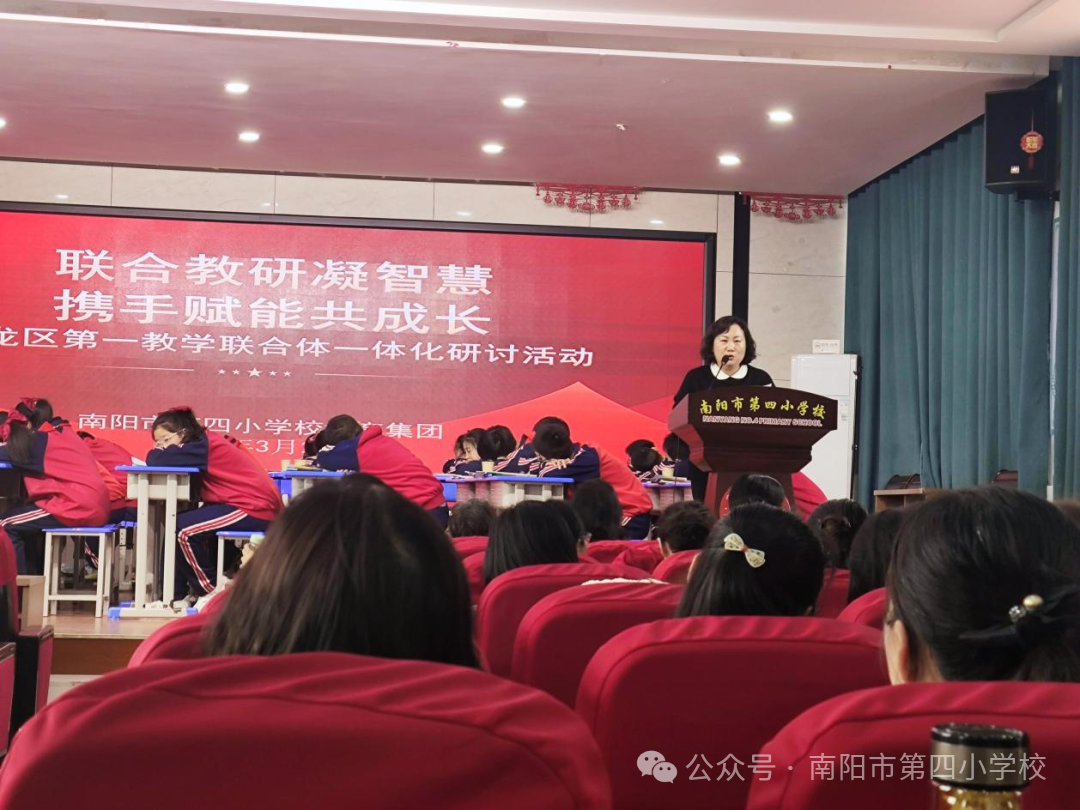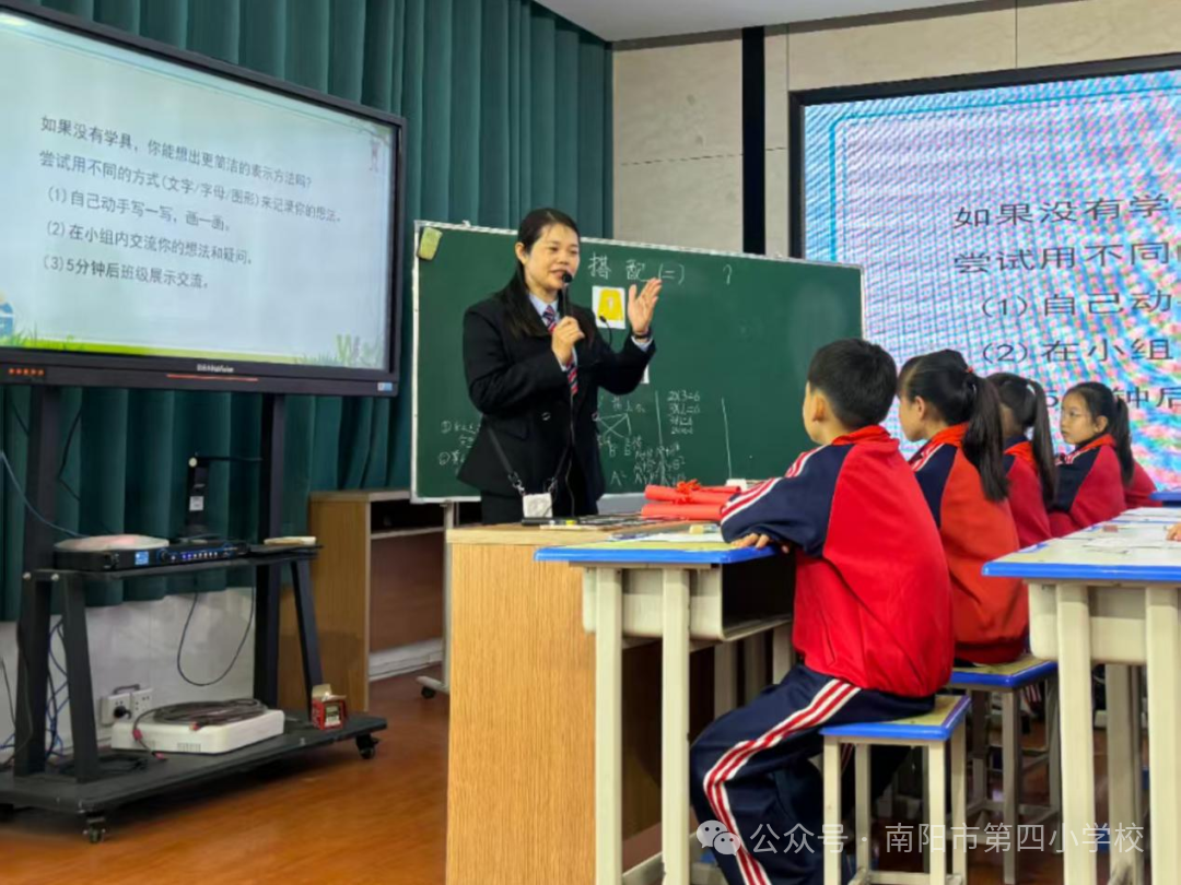 【四小·联合教研】联合教研凝智慧 携手赋能共成长——南阳市卧龙区第一教学联合体一体化数学研讨活动春光作序,万物和鸣。为进一步加强校际间的教研合作与交流,深化课程改革,促进教师的专业发展和教学质量的提高,2025年3月27日南阳市卧龙区第一教学联合体一体化数学研讨活动在南阳市第四小学校举行。来自教研室的王阳老师、六小、十四小、十四中小学部及四小分校的领导和老师们共同参与了活动。 本次活动由教导处郭坤明主任主持。第一联合体以课堂教学为抓手,以提升教师教学技能为目标,融教学、研究为一体,通过“校际交流、区域联动、优势互补”的联合体教研活动,吸取各校有益的经验,取长补短,实现以研促教、以教促研的良好教育科研氛围,不断提高教师的教育科研意识和质量意识,为推进基础教育课程改革,落实“双减”任务,全面提高学校教育教学质量奠定坚实的基础。 我校的姬新雨老师执教了《鸽巢问题》,这堂课充分展现了姬老师扎实的教学功底与独特的教学智慧。姬老师的课堂环节过渡自然流畅,如同一根穿引知识珍珠的“针”。从“石头剪刀布”的小游戏导入,到循序渐进利用杯子和签子摆一摆,再到引导学生自主验证,最后总结归纳得出结论,每个环节紧密相连,学生在不知不觉中深入探究知识,思维不断进阶。 十四中小学部的李玲老师别出心裁的用握手缓解学生的紧张情绪,让学生初步感悟有序。然后从小朋友感兴趣的服装搭配问题入手,让学生实地操作用自己喜欢的方法搭配服装。学生在汇报交流时,教师强调思考的有序性,让学生更好地感悟搭配策略中有序的数学思想本质,引导学生充分经历体验感悟、抽象概括的学习过程,不断发现规律,提高数学思维能力。激发学生对问题探究的兴趣,让学生在兴趣盎然中投入到本节课新知的学习中来。 教研室王阳老师以《教师如何践行新课堂》为题做了专题讲座。她为我们带来了小学数学教学最前沿的理念,从研读新课标,用好新教材,践行新课堂几方面对老师们进行培训。王老师先从课标的三次变化入手,详细的讲解了小学数学教材的总体变化,特别提出要增加数学阅读,提高学生的应用意识,并要注重“数学+”的学习,加强学科关联。最后她对老师们提出中小学新课标背景下的新希望——守正创新。 本次小学数学联合体教研活动在大家的共同努力下,取得了丰硕的成果。我们在交流中碰撞出思维的火花,在学习中不断提升自己的教学水平。教研之路,任重道远,让我们以本次活动为契机,继续携手前行,共同探索小学数学教学的新方法、新路径,为提升学生的数学素养而努力奋斗!(邢有军) 文字 | 郭坤明 孔 争 图片 | 孔 争 闵雅洁 编辑 | 闵雅洁 |
