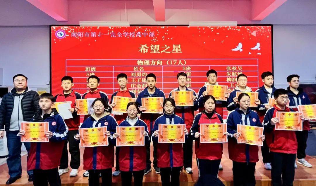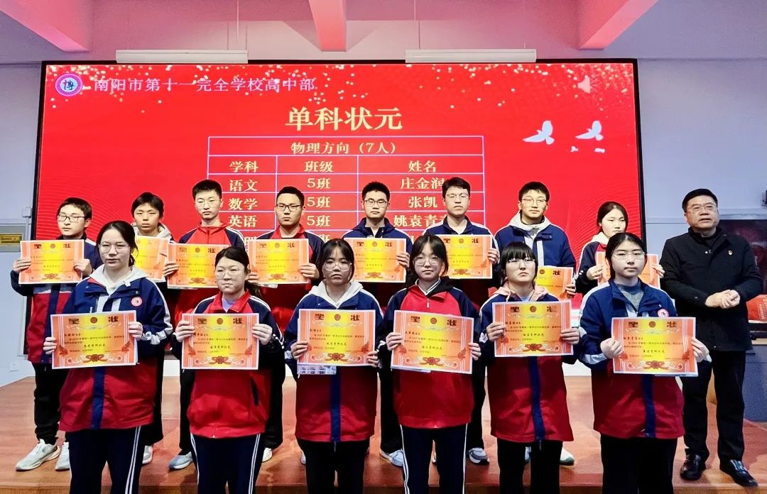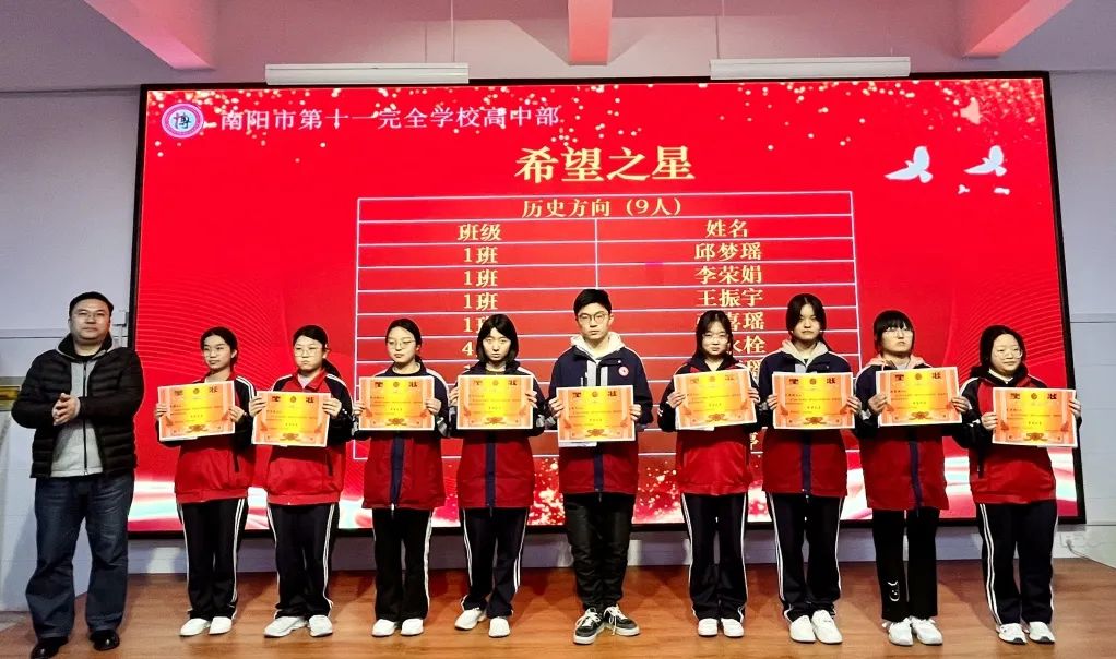 南阳市第十一完全学校高中部2025届高三一模表彰大会圆满春潮涌动,万物竞发。3月28日下午,南阳市第十一完全学校高中部隆重举行了2025届高三一模考试表彰大会。全体高三师生齐聚一堂,共同见证这一荣耀时刻,为拼搏喝彩,为高考蓄力! 大会在庄严的国歌声中拉开帷幕。全体师生肃立注视国旗,歌声嘹亮,目光如炬。 荣耀时刻:致敬奋斗的青春 高三年级副主任张海泳宣读了表彰名单,对在一模考试中表现优异的学子进行了隆重表彰。 杨校长与宋主任为他们颁奖并合影留念。 每一份荣誉的背后,是无数个日夜的坚持与付出。台上熠熠生辉的奖状,不仅是对过去的肯定,更是对未来的激励! 学生代表发言:青春的声音 高三(4)班朱雅琪同学作为学生代表上台发言,她分享了自己备战一模的心路历程,并代表全体高三学子表达了决胜高考的决心:“每一次挑灯夜读,每一次奋笔疾书,都是为了离梦想更近一步。今天的荣誉属于过去,明天的辉煌需要我们继续拼搏!”她的发言真挚动人,赢得了全场热烈的掌声。 校长寄语:奋进的力量 杨强霖校长在总结讲话中为全体高三学子送上殷切嘱托和鼓舞。他勉励同学们:“决定今天的是昨天的态度,决定明天的是今天的努力!”校长的讲话铿锵有力,点燃了全体师生的斗志。他也为学生指出了接下来的备考方向:一是分层突破,精准发力,要找准自己的得分项精准突破;二是科学规划,高效备考,要限时训练规范答题,做好时间管理和身心调试;三是凝聚力量,携手同行,借助学校资源和班级互助小组,形成复习备考合力。杨校长的讲话使学生们提振了士气,明确了今后的复习方向。 冲刺高考:2025誓创辉煌 春风轻拂天地间,万物复苏展新颜。表彰大会不仅是对阶段性成果的总结,更是吹响了决战高考的冲锋号角。过去的三年,同学们以笔为剑,以梦为马;未来的日子,必将以更昂扬的姿态迎接二模考试,冲刺高考!愿全体高三学子以此次表彰为起点,再接再厉,在接下来的征程中书写更璀璨的篇章! 文 稿:李 露 |