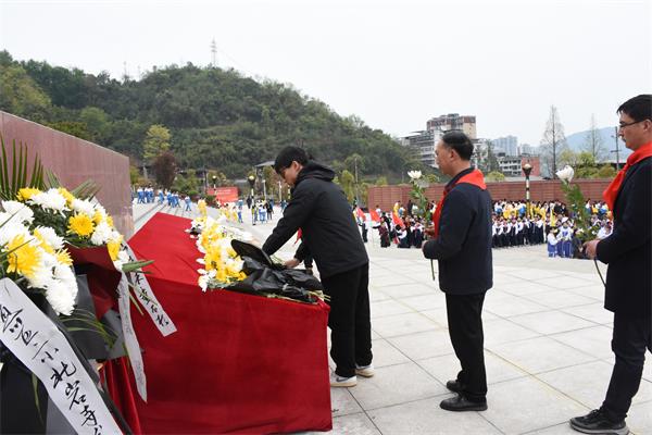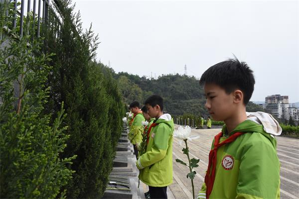 “清明寄情思,春意寄童心”——达川区逸夫小学开展清明节祭扫活动“万物清明,慎终追远”。2025年4月1日下午14点30分,达川区逸夫小学联合共青团达川区委和达川区公安分局翠屏派出所,在达州市红军烈士陵园中开展了一场主题为“清明寄情思,春意寄童心”的祭扫活动。 踏入陵园,静谧肃穆之感扑面而来。主持人以铿锵有力的声音划破寂静:“达川区逸夫小学清明祭扫活动正式开始”。《义勇军进行曲》随即响彻陵园,全体师生昂首肃立,目光中饱含着对历史的敬畏;三分钟默哀时刻,只有山风略过树叶的簌簌声,这一刻,时间仿佛凝固,人们的思绪仿佛回到了那个战火纷飞的年代,深切感受到了先烈们的伟大和无私;全体师生行三鞠躬礼,三次弯腰如同三次深情对话,向长眠于此的先辈们倾诉思念,承诺传承。 花篮寄哀思,缎带系深情。少先队员代表踏着坚定的步伐抬着花篮走向纪念碑,象征着敬意和缅怀的花篮被稳稳地放在纪念碑前,现场氛围十分庄重。团区委与学校领导稳步上前, 英烈事迹震撼人心,铮铮誓言传递薪火。大队辅导员蒋雪莲老师带领逸夫学子庄严宣誓,孩子们的声音洪亮而坚定,誓言声声如雷,在陵园上空久久回荡。 碑前寻弹孔,指尖触荣光。师生分散小组活动,瞻仰烈士墓,为烈士敬献白菊,每一朵菊花都寄托着全体师生们对英烈的无限敬畏和缅怀之情。 英雄虽逝,精神永传。此次清明节扫墓活动是达川区逸夫小学对学生进行爱国主义教育的生动实践,队员们缅怀革命先烈的伟大事迹,激励着他们努力学习、报效祖国的决心。未来,孩子们定会以坚定的步伐,书写属于自己的青春华章,英烈的精神也永远熠熠生辉。(来源:达川区逸夫小学 蒋雪莲) |