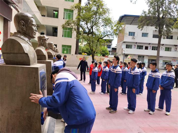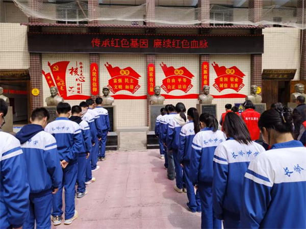 【立壮志 拼荣光】传承红色基因,赓续红色血脉——开江县长岭中学开展「清明祭英烈」红色思政实践教育活动清明不仅是一个踏青祭祖的日子,还是一个慎终追远、祭奠先烈,传承红色基因的庄严节日,为了让学生们深刻领悟清明的深远意蕴,4月1日,四川省达州市开江县长岭中学开展了“传承红色基因,赓续红色血脉”主题教育活动。 在党支部副书记卢正辉、学生处主任罗绪林和团委书记杨家的带领下,开江县长岭中学的部分学生来到中共广福特支旧址川东游击军指挥中心旧址参观学习。同学们有序进入展馆参观,同学们庄重地用自己的双手为革命先烈的丰碑擦净尘土,使得各先烈雕像在阳光下熠熠生辉,全体学生鞠躬献上诚挚的敬意并寄以哀思。 接着,同学们在党支部副书记卢正辉、学生处主任罗绪林和团委书记杨家的带领下来到唐在刚烈士故居。同学们通过视频、图片、实物,直观地了解到唐在刚烈士在抗日战争中的贡献与艰辛,同学们内心深受震撼,激发了同学们浓厚的爱国情怀。 同学们不仅走出校园与革命先烈“直面对话”,还在团委书记杨家老师开展的主题团课和主题班会中逐渐坚定对共产主义事业的信念决心和为祖国繁荣富强伟大事业努力奋斗的决心。 传承红色基因,赓续红色血脉。此次「清明祭英烈」红色思政教育主题活动开展圆满成功。学校师生受到爱国主义精神的振奋,承接红色基因密码,觉醒代代传承的血脉精神,誓要以史为鉴,开创美好未来。(来源:开江县长岭中学 孙悦) |