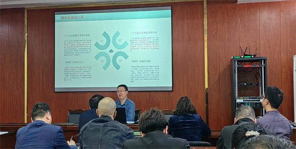达州开放大学宣汉分校开展教育强国建设规划纲要专题学习活动4月7日下午,达州开放大学宣汉分校组织全体教职员工开展《教育强国建设规划纲要(2024 ~2035年)》专题学习活动,在全校迅速掀起一股学习教育新思想、探索教育新路径的热潮。专题学习由宣汉分校党支部书记、校长曾伶俐主持,副校长于建明主讲,全校教职工聆听。 曾伶俐强调,《纲要》承载着党和国家对教育事业的高度重视,关乎着国家未来人才的培养与民族的复兴,《纲要》的颁布为教育事业的发展提供了明确的方向和坚实的指引。深入学习《纲要》对学校教育质量的提升、教师教育理念的更新以及学生综合素质的全面发展都有着至关重要的作用。要把学习贯彻《纲要》精神作为一项长期而重要的任务,持续组织各类学习研讨活动,引导全体教职工把《纲要》精神融入开放教育教学工作,积极为教育强国、学习大国建设贡献智慧和力量。 于建明围绕《纲要》出台的时代背景、重要意义、总体目标,以及《纲要》的“六大特质”(强大的思政引领力、人才竞争力、科技支撑力、民生保障力、社会协同力、国际影响力)、“八大体系”(全面构建固本铸魂的思想政治教育体系、公平优质的基础教育体系、自强卓越的高等教育体系、产教融合的职业教育体系、泛在可及的终身教育体系、创新牵引的科技支撑体系、素质精良的教师队伍体系、开放互鉴的国际合作体系)、深化教育综合改革和组织实施等相关内容进行阐释。并结合大量生动的教育实例,让抽象的政策条文变得通俗易懂,帮助老师们更好地理解《纲要》精神,激励全校教职工牢记使命,秉持初心,砥砺前行,为建设教育强国、学习大国贡献开大力量。 宣汉分校副校长于建明解读《纲要》 教职工纷纷表示,专题学习收获颇丰,受益匪浅,将以《纲要》为行动指南,积极投身教育改革创新实践,为推动学校教育高质量发展、助力教育强国建设贡献自己的力量 。(来源:达州开放大学宣汉分校) |