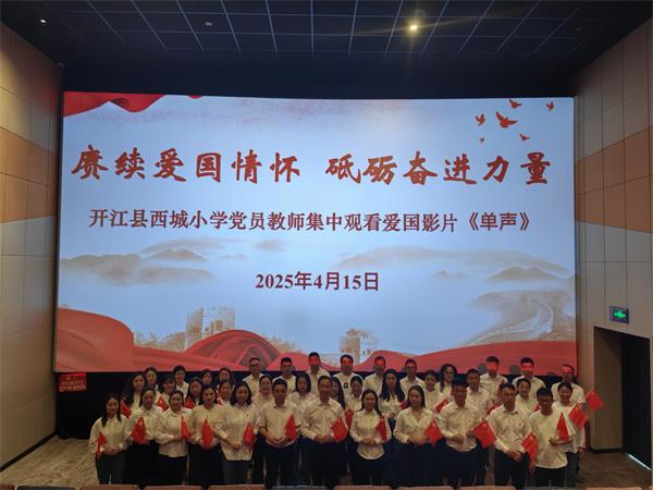 赓续爱国情怀 砥砺奋进力量——西城小学党组织观看爱国主义题材电影《单声》为深入学习贯彻党的二十届三中全会精神,弘扬爱国主义精神,充分发挥先进典型的示范引领作用,进一步增强党员爱党爱国热情和使命担当意识,4月15日下午,开江县西城小学校党支部组织党员教师、非党员行政领导、教师代表集中观看了爱国题材电影《单声》,通过银幕上的感人故事,汲取前行的力量,不忘初心、牢记使命。 光影铸魂:从银幕中感悟家国情怀 影片聚焦著名爱国侨领、“反分裂国家法首倡者”单声先生的传奇人生。通过珍贵影像资料与访谈实录,生动再现了他旅居海外六十载始终心系祖国统一大业,率先提出立法反“独”促统的政治远见,以及为推动两岸和平统一奔走呼号的赤子之心。影片中单声先生积极捐献文物、捐资助学、支援家乡建设的感人片段,深刻诠释了海外赤子“华侨旗帜、民族光辉”的精神丰碑,他的家国情怀让在场的每一位教师都为之动容。 学思践悟:以榜样力量凝聚奋进共识 此次观影活动是学校党支部深化爱国主义教育的重要载体,既彰显了基层党组织在反“独”促统斗争中的政治引领作用,更通过艺术化表达增强了意识形态教育的感染力。观影结束后,大家结合自身岗位展开了热烈讨论,全体党员教师纷纷表示,将以更加昂扬的姿态投身立德树人事业,为实现中华民族伟大复兴中国梦培育更多有理想、敢担当的时代新人。 下面一起来听听西小党员老师的观影感言吧! 观看了电影《单声》,单老那份心系桑梓、赤诚向国的情怀,深深触动了我。他虽身居海外,却始终情牵祖国,推动立法反对分裂,助力家乡教育,无偿捐献文物。作为教育工作者,我会以单老为榜样,努力传承和弘扬爱国精神,把爱国主义教育渗透日常课程,厚植少年儿童爱国主义情怀;学习单老凝聚同胞之力,增强教师团队向心力,带动西小教师砥砺奋进,不负期望、不负热爱,为家乡教育高质量发展全力以赴! ——党支部书记、校长 孙成霖 电影《单声》中,单老的感人事迹充分彰显了"华侨爱国心,拳拳赤子情"。对照教育教学工作实际,我深感铸牢中华民族共同体意识责任重大。今后,我会将爱党爱国情怀与教师"为党育人,为国育才"时代使命紧密结合,借思政课堂、主题活动等载体,丰富爱国主义教育,引导师生树立正确民族观、国家观,让中华民族共同体意识在校园落地生根,为培养德智体美劳全面发展的时代新人贡献积极力量。 ——党支部副书记 廖江玲 观看《单身》后,我的内心久久无法平静。片中单声老先生将自己珍藏的文物全部捐献给国家,这一壮举如同一束强光,照亮了我对奉献与担当的认知。作为一名党员教师,我肩负着为党育人、为国育才的使命。在教育岗位上,虽然我没有惊天动地的壮举,但每一堂课、每一次对学生的悉心教导,都是在践行这份使命。今后,我会以单老先生为榜样,精益求精传授知识,积极培养学生家国情怀,在平凡岗位上默默耕耘,为教育事业竭尽所能。 ——支委委员、办公室主任 周小溧 观看电影《单声》后,我的内心久久不能平静,影片中传递的爱国情怀、坚韧精神和对正义的执着追求,如同一束光,照亮了我对教育事业的新思考。在今后的教育教学工作中,我将以单声先生为楷模,把影片中所传达的精神融入到教育实践中,用爱与责任为学生的成长保驾护航,努力培养出有爱国情怀、有坚韧品质、有正义感的新时代少年。 ——党员教师乔继珍 从《单声》中我读懂了三个维度:海外赤子用文物收藏守护文化根脉的执着,以法律智慧捍卫国家主权的清醒,凭教育捐赠托举民族未来的远见。这些精神坐标恰如三棱镜,将赤子之心的白光解析成绚丽的爱国光谱。单声先生用四十年光阴构建的"文化方舟",与三尺讲台上我们正书写的育人诗篇形成奇妙共振。作为党员教师,我更清晰自己的使命——既要当好传统文化的摆渡人,更要成为新时代爱国精神的领航员。 ——党员教师熊廷江 单声老先生将国家情怀刻在了自己的骨子里,身体力行,用行动告诉我们,爱国就要体现在我们的日常工作和生活中。作为一名党员教师,就应坚守教书育人的初心,做到爱国爱岗,敬业奉献。在平时要尽心尽力地完成工作中的每一项任务,提高工作效率和质量,不断提升工作能力,让自己发挥更多的价值,还要时刻牢记国家利益高于一切,国家安全人人有责,只有祖国强大,我们才能有更好的未来。 ——党员教师邓婉秋 学校党支部组织下观看了爱国主义电影《单声》,这部影片讲述了旅居英国的爱国华侨单声先生身居海外却始终心系祖国、情牵故土的一生。作为一名党员教师,我深受触动,影片中展现的家国情怀、文化担当与奉献精神,让我对自身的职责使命有了更深的理解与感悟。我们要以单声先生为榜样,将个人理想信念与党和国家的命运紧密相连,在教育教学中融入社会主义核心价值观,努力培养担当民族复兴大任的时代新人。 ——党员教师张浓贤 我在学校党支部的精心组织下观看了纪录片《单声》,内心满是触动。影片里,单老旅居海外仍心系祖国,无偿捐献珍贵文物,用行动诠释着深沉的爱国情怀。身为教师,我们也应把这份爱国热情融入教育事业。课堂上,我会将文物背后的历史文化融入美术教学,让学生感受传统文化魅力;课余时,组织红色主题绘画活动,激发学生爱国之情。