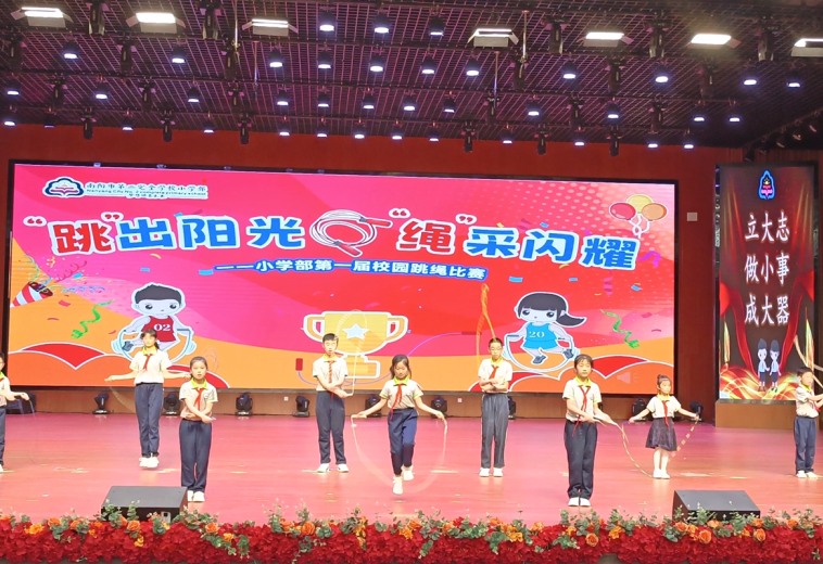 绳彩飞扬,追逐梦想。为全面落实素质教育,推动阳光体育运动深入开展,南阳市第二完全学校小学部首届校园跳绳大赛火热启幕!本届赛事设1分钟竞速跳绳和1分钟花样跳绳两个项目,秉承“全员参与、快乐运动”的办赛理念,经过班级擂台赛的激烈角逐,近900名跳绳健儿脱颖而出,成功晋级年级总决赛。赛场上绳影翩跹交织梦想图谱,速度技巧绽放蓬勃朝气!