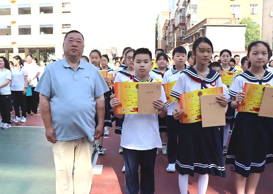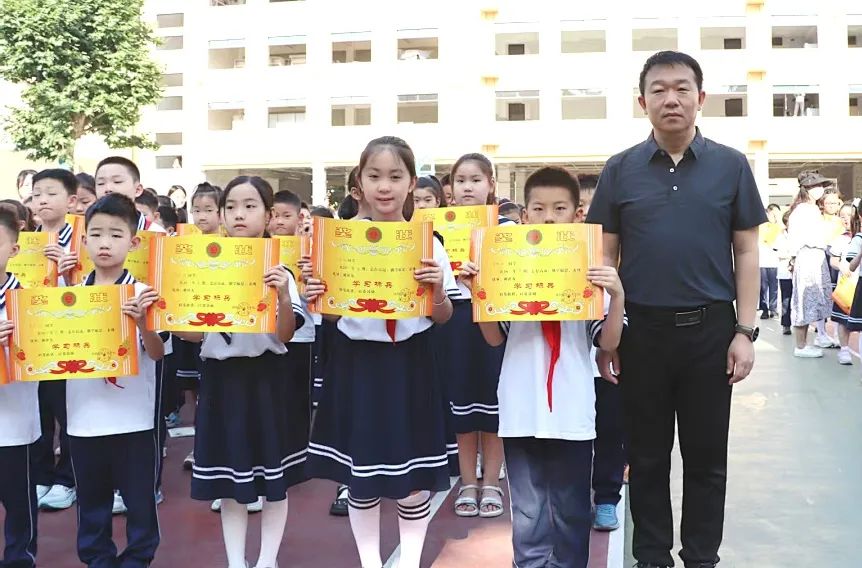 南阳市第九小学校举行“学习标兵”表彰大会本次“学习标兵”表彰大会由教导处陈曦主任主持。 水玉副校长宣读各年级“学习标兵”表彰名单。 校长寄语 王晓东校长在寄语讲话中勉励同学们:要以今天的表彰为新的起点,把个人理想融入国家发展,把创新精神融入学习生活,用勤奋和智慧点亮未来。 期待九小学子长大后成为各行各业的“创新尖兵”,为祖国的明天增光添彩。 “学习标兵”代表发言 六年级叶瑾萱同学代表“学习标兵”向同学们分享自己的学习经验。 荣耀时刻 王晓东校长、水玉副校长为六年级“学习标兵”颁发奖状和奖品。 熊明明副书记、吕春晓副校长、贾黎宁副校长、赵旭副校长、张小平主席为一至五年级“学习标兵”颁奖。 合影留念 共享喜悦 半程已过,征途未歇;繁花满树,更待硕果。初夏的暖风轻拂奖台前耀眼的奖状,将奋斗的荣耀织入朝霞。愿九小学子以“学习标兵”为激励,孜孜以求,追求卓越,足履实地,行稳致远,将努力酿成花蜜,将坚持结成硕果,绘就更加璀璨的未来! |