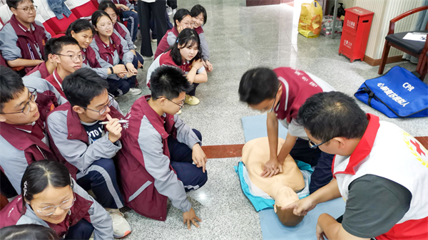 同学们认真聆听、积极提问,认真观察每一个示范动作。在互动环节,大家热情高涨,踊跃参与实际操作。红十字会工作人员耐心指导,及时纠正错误动作,指导同学们熟练掌握急救技能,将所学理论知识转化为实践能力。