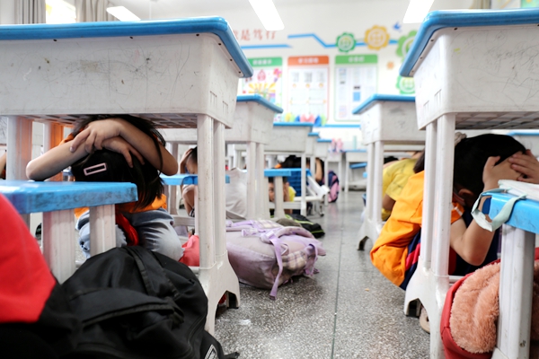 2025年5月15日上午8.40,警报声响起,师生迅速采取课桌下避险姿势,用书包护住头部。主震结束后,哨声指挥师生按预定路线疏散,全程保持"前后门分流、不推挤"原则,5分10秒内全体安全抵达操场集结点,并向学习安全管理处汇报人数。