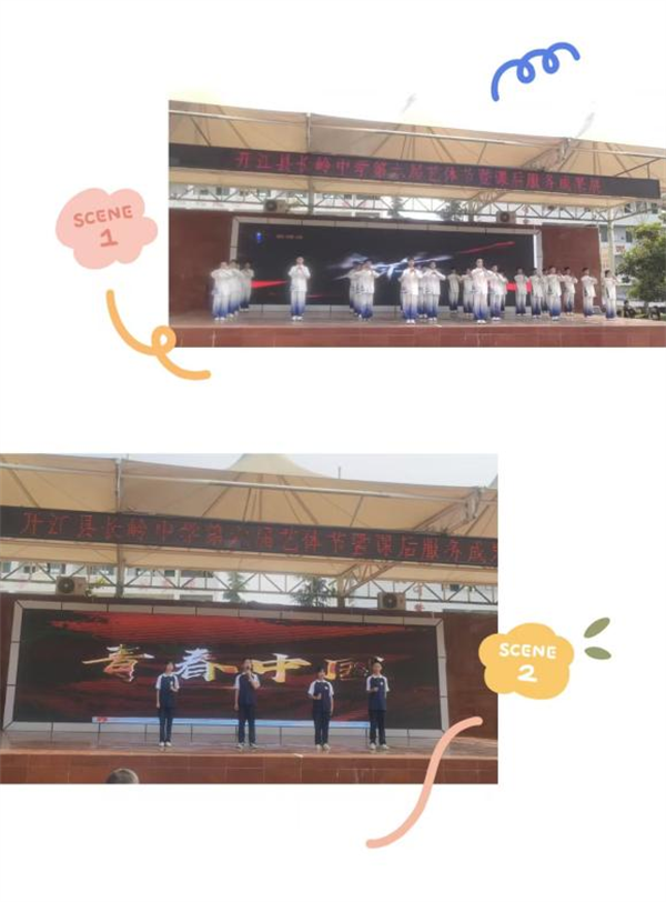 青春飞扬展风采,课后服务结硕果——开江县长岭中学成功举办第六届艺体节暨课后服务成果展示活动为全面贯彻“双减”政策,践行“五育并举”育人理念,展现新时代、新青年、新作为长中学子蓬勃向上的精神风貌,2025年5月16日,开江县长岭中学隆重举办第六届艺体节暨课后服务成果展示活动。 庄严·传承 国歌奏响,全场肃穆。鲜艳的五星红旗迎着微风冉冉升起,少先队员行队礼,其余师生行注目礼,目光中满是崇敬与自豪。这一刻,时光仿佛凝固,爱国之情在心底悄然生长、汇聚,化作对祖国最炽热的祝福,在蓝天白云间久久回荡。 寄语·期许 开江县长岭中学党支部书记、校长曾令波致辞。我们坚信,每一个脚印都在丈量成长,每一份付出都在编织未来。无论是初踏校园的学子,还是心系教育的家长,亦或是关心学校发展的各界友人,长岭中学始终以开放的姿态、奋进的步伐,期待与您携手:让每个孩子在“积跬步”中积蓄力量,于“领航梦想”时展翅翱翔!在岁月长河中淬炼出“为党育人、为国育才”的使命担当。 开江县长岭镇副镇长廖清泉代表镇党委、政府向全体师生致以最热烈的祝贺,向为筹备本次活动付出辛勤努力的老师们、同学们表示衷心的感谢!希望同学们珍惜这一展示自我的舞台,用艺术点亮青春,用体育强健体魄,在追求卓越中书写属于自己的精彩篇章。 荣耀·榜样 开江县长岭中学分管教学副校长孙怀文宣布2025年春季期中领航卓越学生和追梦英才学生表彰名单,弘扬品行端正、刻苦钻研、追求卓越和永不放弃的精神。 绽放·风采 古韵诗意篇 七二班带来的《大鱼海棠》、七四班带来的《繁花》以及七一班带来的《折柳》和《寄明月》都融合了中国传统文化与现代舞蹈表达,一挥一袖间展现东方美学。 青春家国篇 七二班带来的《少年中国说》、七四班带来的《青春中国》、八一班带来的《让我们把红色家书读给你听》和八二班带来的《强国有我》 展现出长中学子对青春的无畏和对祖国深深的爱意。 特色民族篇 七二班带来的傣族舞《彩云之南》和八三班带来的新疆舞《花帽》。这一刻,舞蹈不再是简单的肢体艺术,而是中华民族血脉相连、携手同心的无声赞歌。 潮流动感篇 八三班带来的舞蹈《执迷不悟》潮流有动感,同学们用自信的动作表达出驱散成长道路上的迷雾,勇往直前。 精选校外篇 开江县第二中学带来的舞蹈《竹林深处》,舞蹈演员们专注的神情和专业的舞姿使得观众置身于云南傣家竹林中;开江县职业中学带来的舞龙《龙腾青春》,快速的形态变化仿佛似真龙飞腾,让人振奋。 课后服务成果展示篇 开江县长岭中学扎染社筹办的时装秀《素手织锦华》带给所有观众耳目一新的感觉,学生们穿上亲手制作的各式服装并配以扎染手工艺品展现于舞台上。 各类书法作品、绘画作品、剪纸作品以及期中优秀试卷悬挂于展览区,体现长岭中学特色课后服务丰硕的成果,见证“五育并举”背景下的多元成长。 尾声·铭记 悠扬的歌声缓缓落下,爱国的深情却在我们心中久久激荡。当《我和我的祖国》的旋律响彻整个校园,每一个跳动的音符都诉说着我们对祖国的眷恋与热爱。愿我们的祖国繁荣昌盛,愿我们的校园桃李芬芳! (来源:开江县长岭中学 孙悦) |