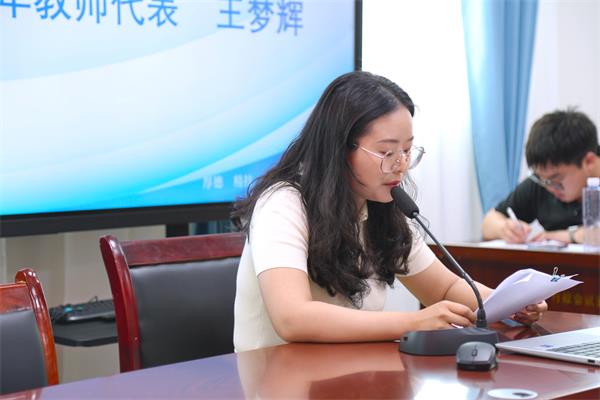 座谈会上,00 后教师代表叶浩然结合新教师视角,分享了对职业的理解、融入学校的感受及教学创新尝试,展现了新生代教师的活力与想法;90 后教师代表王梦辉围绕入职后的教学实践、职业困惑、成长感悟及对学校发展的建议进行交流,体现了其在教学中的探索与思考;80 后青年干部代表李绍荭则从管理岗位出发,分享了与青年教师的协作经验、助力青年教师成长的思路,以及在学校管理与教学融合中的思考。