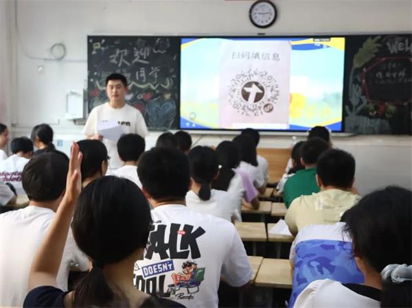 教室里展开了首日最温暖的一幕——学生自我介绍、班级文化建设,出谋划策设计班歌、班徽、班级口号、班级公约等,以及班委干部的竞选,这是一次温暖且欢乐的破冰之旅,快速消除隔阂、增强了解。
