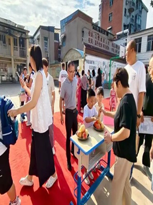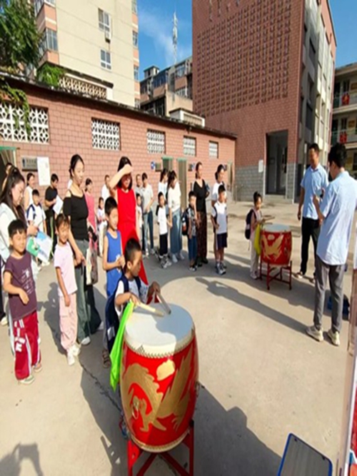 共赴成长之约 携手奔向远方--安阳市南关小学2025级一年级入学仪式温情启幕时间:2025-08-31 初秋的阳光洒满校园,带着对新程的期盼,安阳市南关小学2025级一年级入学仪式于8月30日温情启幕。稚嫩的脸庞映着好奇与憧憬,小小的身影在家长的陪伴下,踏着红毯穿过拱门,在一场充满仪式感的成长礼中,许下与校园的第一份约定。 击鼓明志:三声鼓响,立下少年远志 入学仪式的第一站,两面雕有龙凤的大鼓前早已排起了长长的队伍。“咚!咚!咚!”清脆的鼓声里,藏着对新生的第一份期许。孩子们扬起小手,郑重地敲响鼓面:第一击,愿“目明耳聪,学好知识”;第二击,盼“茅塞顿开,勤思善问”;第三击,立“志存高远,天天向上”。每一声鼓响,都是成长的宣言,在校园上空荡起清脆的回响。
