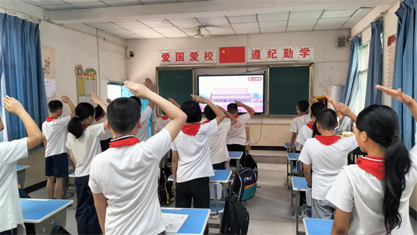 铭记抗战精神,传承爱国薪火——达州高新区阁溪学校组织全体师生集中观看9.3阅兵仪式活动简报为深切缅怀抗战先烈,铭记中国人民抗日战争暨世界反法西斯战争胜利的伟大历史,厚植师生爱国情怀,9月3日上午,四川省达州高新区阁溪学校组织全体师生在教室集中观看9.3阅兵仪式直播,在震撼与感动中接受了一场深刻的爱国主义教育。 红旗涌动,热血沸腾 观看现场处处涌动着红色热潮。师生们手持鲜艳的五星红旗,目光热切地聚焦在屏幕上,原本喧闹的校园瞬间变得庄重肃穆。当激昂的《义勇军进行曲》奏响,全体师生自发起身,昂首挺胸、声情并茂地高唱国歌,嘹亮的歌声在校园久久回荡。 当屏幕中受阅将士迈着铿锵有力的步伐、以整齐划一的方阵阔步前行,当先进的武器装备依次亮相、展现大国力量时,现场爆发出此起彼伏的欢呼与掌声,不少师生眼中闪烁着激动的泪光,手中的国旗挥舞得更加用力,那份发自内心的民族自豪感在每个人心中激荡。 情真意切,砥砺初心 “看到抗战老兵坐着轮椅仍坚持敬礼的画面,我鼻子一酸。他们用青春与热血换来了今天的和平,这是我们必须永远铭记的。”一位语文老师动情地说,“作为教育者,我们要把抗战故事讲给每一个学生,让红色基因融入他们的成长,引导他们成为有担当、有情怀的新时代青少年。” 学生们的感悟同样真挚热烈。四年级学生吴佩娴激动地分享:“今天看到阅兵式,看到祖国的强大,我才真正明白‘落后就要挨打’的道理。我以后一定要好好学习,将来用知识为祖国的发展添砖加瓦!”六年级学生杨思雨则表示,阅兵式让他读懂了“和平”二字的重量,“我们享受着先辈用牺牲换来的和平,更要珍惜当下,努力成为能守护这份和平的人。” 为让纪念氛围更浓厚、教育意义更深刻,学校精心打造了全方位的红色氛围。校门口和教学楼前的LED大屏幕上,“勿忘国耻,吾辈自强,铭记历史,开创未来”等标语滚动播放,鲜红的字体与庄重的底色相得益彰,让师生在观看阅兵前后,都能沉浸式感受历史的厚重,进一步加深对“铭记历史、珍爱和平”的理解。 厚植情怀,凝聚力量 此次集中观看阅兵仪式,不仅是一次对历史的回望,更是一次对精神的洗礼、对信念的淬炼。它让全体师生在直观、震撼的体验中,深刻认识到抗战胜利的伟大意义,真切感受到祖国日益强大的综合国力,爱国主义情感得到了极大激发,民族自豪感与凝聚力显著增强。更重要的是,这场活动为师生们注入了强大的精神动力:教师们纷纷表示将把爱国情怀融入日常教学,以更饱满的热情培育时代新人;学生们则树立了“为中华之崛起而读书”的远大志向,明确了肩负的历史使命。活动真正实现了“以史育人、以情动人”的教育目标,为学校爱国主义教育的深入开展奠定了坚实基础。(来源:达州高新区阁溪学校 刘洪燕) |
