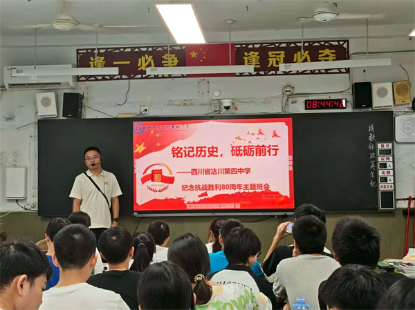 四川省达川第四中学9.3阅兵观礼点燃学子爱国情怀2025年9月3日上午,四川省达川第四中学全校师生共同观看纪念中国人民抗日战争暨世界反法西斯战争胜利80周年阅兵式,各班班主任统一组织开展了“铭记历史,砥砺前行”主题班会课,全程组织学生集中观看盛大的阅兵式实况直播。 穿越历史 为什么选择9月3日这一天举行阅兵?班主任老师们首先为同学们讲解了这一日期的特殊历史意义。1945年9月2日,日本向同盟国无条件投降签字仪式在密苏里号战列舰上举行,标志着二战正式结束。次日,也就是9月3日,被定为中国人民抗日战争胜利纪念日。 80年后的今天,我国再次在这一天举办盛大的阅兵活动,纪念那场伟大胜利,缅怀为胜利献出生命的先烈,彰显中国作为二战东方主战场的巨大贡献。 见证辉煌 观看过程中,同学们被阅兵式的壮观场面深深震撼。徒步方队、装备方队和空中梯队依次亮相,受阅部队展示了新体制、新能力、新风貌。新型四代装备如新型坦克、舰载机、歼击机,以及陆上、海上、空中系列无人智能和反无人装备,还有网电作战等新型力量,让同学们惊叹不已。“看着这些先进的武器装备,我真切感受到了祖国的强大!”高二年级一名学生激动地说,“作为新时代青年,我们更应该努力学习,为祖国的发展贡献力量。” 铭记历史 在这次主题班会之前,各班班主任做了充分准备,不仅讲解了抗战历史,还组织了讨论和分享活动。同学们通过朗诵抗战家书、演唱红色经典歌曲等形式,表达对革命先烈的深切缅怀和崇高敬意。观影结束后,班主任引导同学们从历史细节中感悟精神力量,将爱国心化为报国行。大家纷纷表示,要将观看阅兵式的激动心情转化为实际行动,从抗战历史中汲取奋进力量,将英雄们的崇高品质转化为刻苦学习、报效祖国的实际行动。“铭记历史的意义,在于从中汲取前行的力量;砥砺前行的关键,在于将所思所感转化为实际行动。”这句话道出了这次主题班会课的核心价值。 此次“铭记历史,砥砺前行”主题班会课,不仅是达川第四中学爱国主义教育的重要一环,更是一次全校范围的教育理念与育人实践的集中展示。通过观看阅兵式和开展系列主题活动,同学们不仅深刻理解了抗战历史的意义,更激发了爱国热情和奋斗精神。(来源:达川第四中学) |