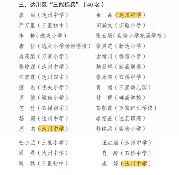 热烈祝贺达川中学52名教师喜获市、区级表扬