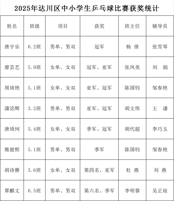 四连冠!达川区实验小学花溪学校再夺全区中小学生乒乓球赛小学组团体第一名在2025年9月11日至14日举行的达川区中小学生乒乓球比赛中,达州市达川区实验小学花溪学校代表队继续发扬奋力拼搏、勇夺第一的精神,斩获小学组乒乓球团体总分第一名,男女单打包揽前三、男女双打分别夺得冠、亚、季军。 自2022年被授予“四川省乒乓球特色学校”称号以来,学校将乒乓球训练全面纳入日常体育教学体系,广泛普及基础技能,重点培养梯队人才。通过系统化集训和高频率实战对抗,不断锤炼学生的心理素质与战术应变能力,持续推动“国球强身”特色发展。 赛场回顾 比赛场上,参赛双方选手展开激烈对抗。多拍相持,比分紧咬,每一分都需经过数十回合的艰苦争夺。运动员们不断飞身救球,全力搏杀,展现顽强拼搏的意志。即使落后也毫不气馁,一次次奋起反击,充分展现了团结、拼搏和永不服输的体育精神。 此次乒乓球比赛夺冠,不仅是学校“国学铸魂、国球强身、国乐立品”办学特色的生动体现,更是师生辛勤付出与“五育并举”育人成果的风采展示。体育强,则中国强;国运兴,则体育兴。达川区实验小学花溪学校必将不负使命,在体教融合的道路上奋勇争先,再创辉煌!(来源:达川区实验小学花溪学校) |