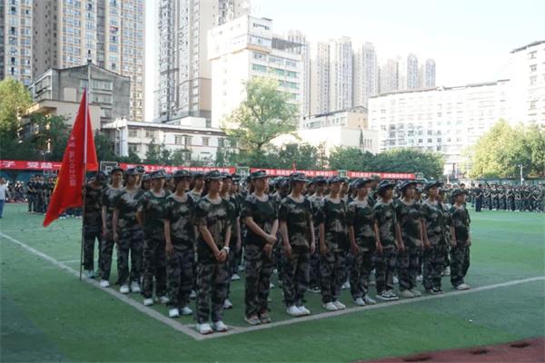 新生代表王雨婷发言:经过汗水的洗礼,我们将更加坚强,更加自信,更加团结;我们将以优异的军训成绩,向学校、向教官、向老师、向家长,更向自己,交上一份满意的青春答卷!