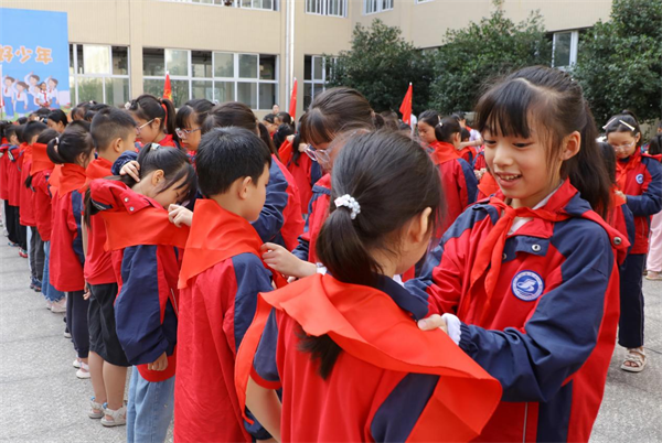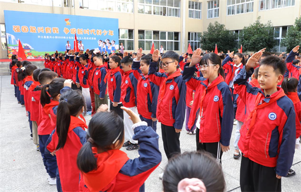 强国复兴有我,争当新时代好少年——开江县复兴小学2025年“十一三”建队日系列活动纪实金秋十月,队旗招展,童心向党。在中国少年先锋队建队76周年之际,开江县复兴小学于10月组织开展了以“强国复兴有我,争当新时代好少年”为主题建队日系列活动。通过庄严的入队仪式与多层次的主题教育,引导全体少先队员传承红色基因,筑牢理想信念根基。 精心筹备:队前教育扎实有效 建队日前夕,学校少工委统筹部署,于9月30日面向二年级预备队员开展了系统化队前教育。围绕“六知、六会、一做”核心内容,通过讲解队史、示范礼仪、学唱队歌、演练誓词与呼号等方式,激发孩子们对少先队组织的崇敬与向往。五年级队员积极发挥示范带动作用,形成“老带新、传帮带”的良好氛围,为入队仪式的顺利举行奠定坚实基础。 庄严仪式:红色星火代代相传 10月10日上午9时,学校内操场气氛庄重热烈。入队仪式在激昂的出旗曲中拉开序幕,旗手高擎少先队队旗,步伐铿锵,庄严入场。 全体师生齐唱《中国少年先锋队队歌》,歌声嘹亮,振奋人心。 政教主任陈媛媛宣读新队员名单,318名二年级学生正式加入中国少年先锋队。五年级老队员手捧红领巾,郑重为新队员佩戴。鲜艳的“红色”映衬着孩子们自豪的脸庞,象征光荣与责任的传递。 在优秀少先队员邓腾跃的领誓下,新队员高举右拳,庄严宣誓:“我是中国少年先锋队队员……”铿锵有力的誓言回荡在校园上空,展现了新时代少先队员的使命与担当。 新队员代表李易恒在发言中表示,将以红领巾为荣,勤奋学习、积极实践,努力成长为合格的社会主义建设者和接班人。 分管德育副校长余亚辉寄语全体队员,希望他们铭记入队誓言,传承红色精神,锤炼综合素质,立志肩负起民族复兴的时代重任。 “准备着:为共产主义事业而奋斗!”大队辅导员庄严领呼。“时刻准备着!”全体队员的回应铿锵坚定,传递出为实现中华民族伟大复兴而不懈奋斗的信念与决心。 仪式在庄严的退旗曲中圆满落幕,全体队员肃立注目,旗手稳步退旗,为这一庄严时刻画上圆满句号。 深化教育:主题活动全面开展 10月13日建队日当天,学校分年级开展了形式多样的主题教育活动,将红色种子播撒在每个孩子心中。 一年级开展队前知识启蒙,通过动画短片、卡通卡片等生动形式,让孩子们初步了解队旗、队徽的含义;二年级开展“我心中的队旗”绘画活动,孩子们用稚嫩的画笔描绘出对少先队组织的向往;三年级举行队歌合唱比赛,激昂的旋律展现了队员们团结向上的精神风貌;四年级开展“队史小故事”分享会,通过讲述英雄模范事迹,感悟红色精神;五年级开展“强国复兴有我”主题队课,深化对国家发展和个人责任的认识;六年级组织《“准备着”不是口号:我为少先队做过这些事》主题演讲,队员们结合自身实践,畅谈对少先队誓言的深刻理解。 此次“十一三”建队日系列活动,不仅是一次庄严的组织教育,更是一堂生动的爱国主义实践课。通过仪式熏陶和实践体验,少先队员们进一步增强了组织归属感和光荣感,深刻理解了“强国复兴有我”的时代内涵。复兴小学将继续深化阶梯式成长激励体系建设,引导广大少先队员树立远大理想,培养优良品德,勤奋学习知识,锻炼强健体魄,从小学先锋、长大做先锋,努力成长为能够担当民族复兴大任的时代新人,让红色基因代代相传,让星星火炬在新时代绽放出更加灿烂的光芒!(撰稿:开江县复兴小学少先大队部) |